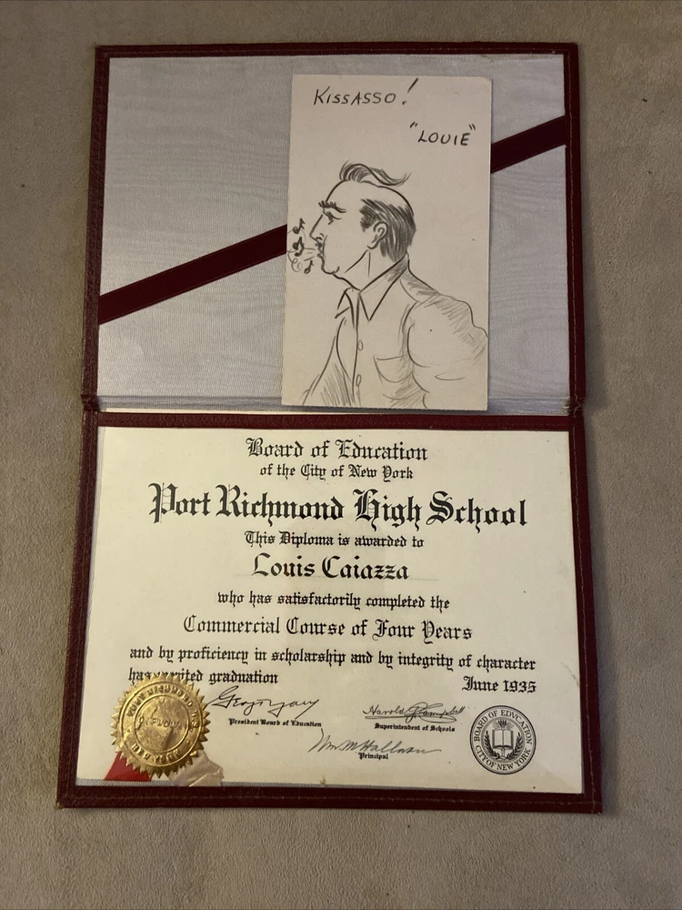 1935 Port Richmond High School Diploma Staten Island NY.The diploma is in nice condition in its original hardcover folder .It has the name Louis Caiazza and inside was a drawing on a application for membership with the Union of Marine and Shipbuilding Workers of America see pix ask any more questions TERMS We offer combined shipping if you buy multiple items to save you money. Our items are described to the best of our knowledge. We are not experts on anything we sell. Electronics are only cleaned on the outside. Clothing comes from within our family. We hope you are happy with your items as we take pride in our packaging. If you need anything please don't hesitate to ask us before you bid. Thank you and take a look at my other items.