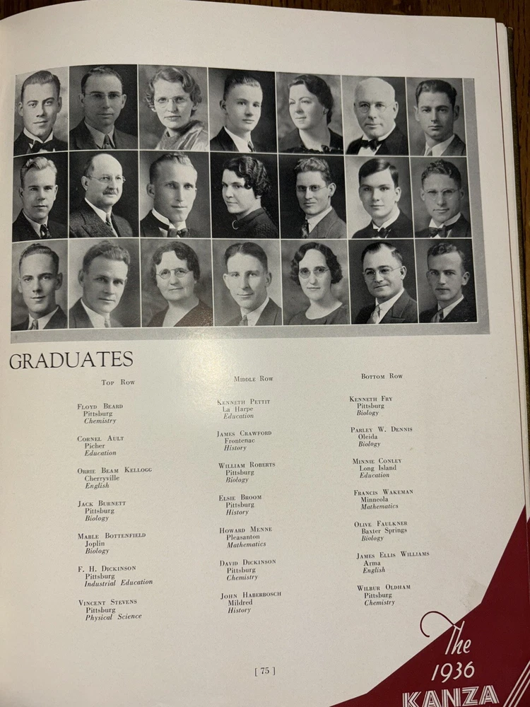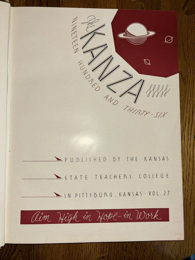 1936 Kanza Kansas State Teachers College Yearbook Pittsburg KS Gorillas PO make inside back cover…no other writing or signatures…. Light rubbing/age spots See pics for details