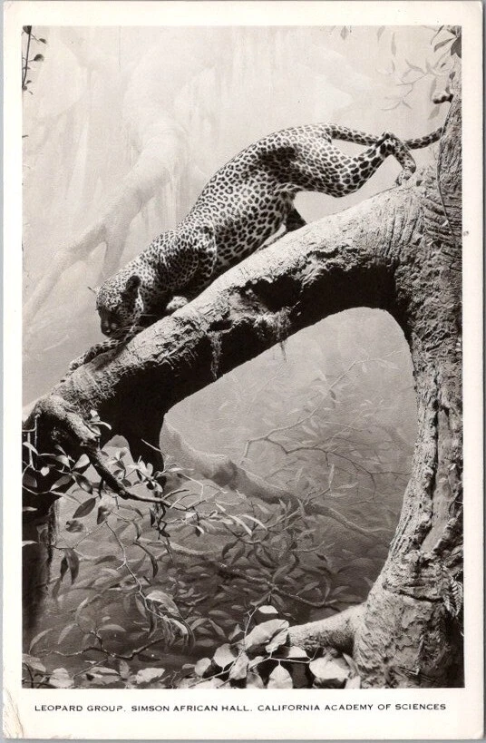 1940s CALIFORNIA ACADEMY OF SCIENCES San Francisco RPPC Postcard "Leopard Group"