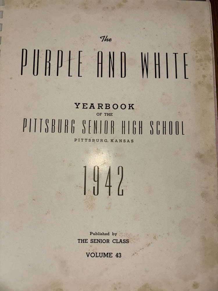 1942 Pittsburg High School HS Dragons Yearbook Kansas KS annual Purple White PO name engraved on cover…. Signatures/writing on several pages See pics for details