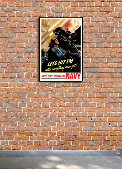 Artscape Galleries Posters from a Simpler Time . . . . . Store Categories Shipping USPS 1st Class USPS Priority Mail USPS 1st Class International Combined Shipping is available Return Policy We stand behind the quality of every print we sell. If you aren't satisfied with your purchase, contact us within 60 days to arrange for an exchange or a full refund. About Us Artscape Galleries is a family owned business based in Las Vegas, Nevada. We have been selling art prints exclusively online for over 15 years. With thousands of satisfied buyers ranging from Movie Studios to Museums, you will not be disappointed! Please vist our other eBay store! Feedback “Impressed! Vibrant colours, edge to edge print. Very excited to get it framed!” “Super fast delivery and the colors are amazingly rich. Thanks for everything!” “Terrific experience with this seller, we buy more from him than anyone on Ebay!” “WOW! Beautiful map! Lightning fast shipping, Very well packed, Great eBayerA++++” “Vibrant and bright! Pic does not do it justice...looks amazing!” Year: 1942 Size: 24"x36" This great Vintage Style World War 2 Poster shows Navy Sailors firing weapons at the enemy. The caption reads: "Let's hit 'em with everything we've got! Don't wait, Choose the Navy." This Classic Vintage Style poster from WWII honors the beauty of this unique art form and evokes the vivid images of simpler times. Each of our prints are custom reproductions printed on 68lb Heavyweight Enhanced Matte Art Paper. These Historic Art Prints are suitable for framing, mounting or direct display on any wall! Graphics and template design by and copyright Artscape Galleries / Posters Past WW2136 Visit our store! 〉 © Artscape Galleries _gsrx_vers_1436 (GS 9.0.5 (1436))