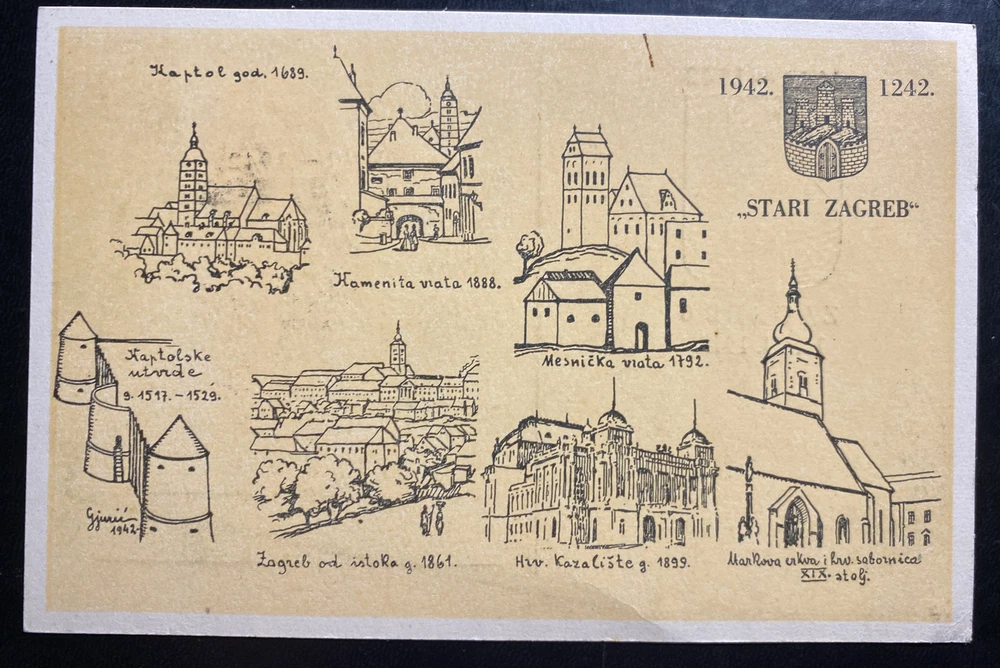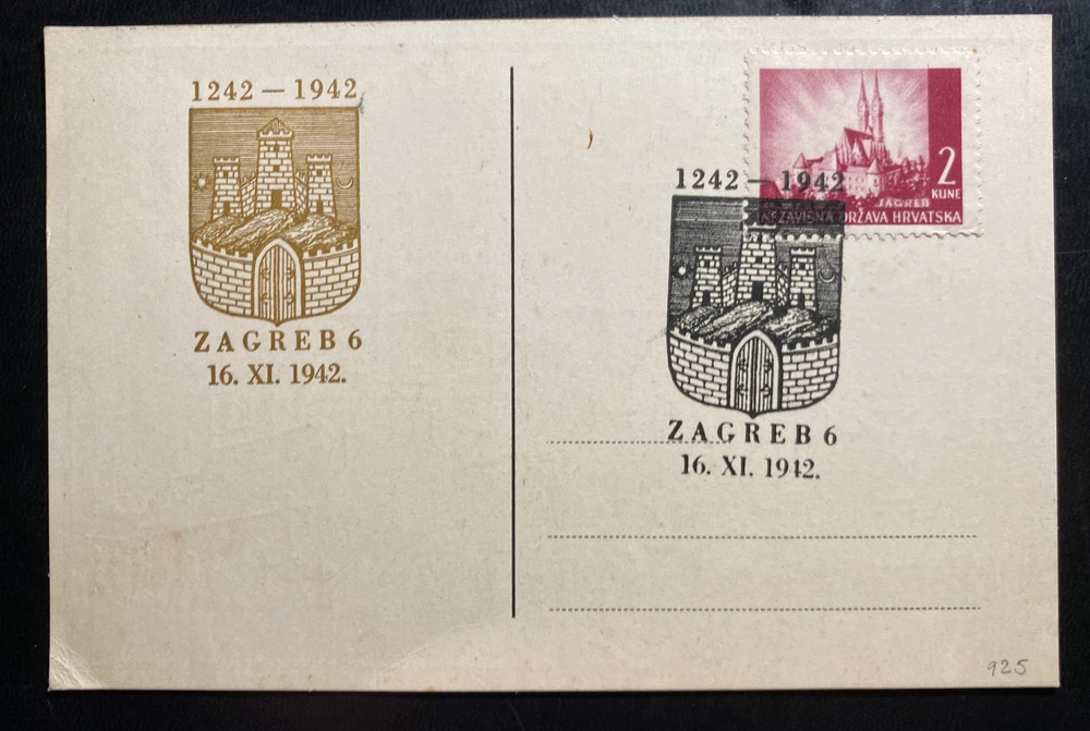 Up for auction is a beautiful first Day Souvenir Postcard cover FDC from Zagreb Croatia . Beautiful stamps and cancels. Postmarked in November 16, 1942. In good condition . Priced to sell. Great Postal history. Provisional stamp . WW2 item. Commemorating seventh centenary postcard
