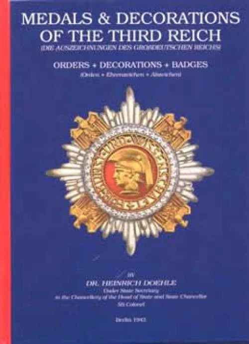 Collector Bookstore Collector Bookstore 724 Delaware Street Leavenworth, KS 66048 Collector Bookstore is a leading specialty retailer of price guides and reference books to inform and educate collectors and professionals in the antiques and collectors markets. Our customers include individual collectors, dealers, appraisers, auctioneers & other industry professionals. You won't receive heavily thumbed shelf copies from us! We buy most titles directly from the publisher and individual authors. Authors are encouraged to submit their reference titles for our consideration. RED-1995-0962488348-WH1 Medals & Decorations of the Third Reich (WWII) by Dr Heinrich Doehle ISBN: 9780962488344 Book Title: Medals & Decorations of the Third Reich: Orders, Decorations, Badges Author: Dr Heinrich Doehle Binding: Hard Cover Copyright: 1995 Pages: 160 Size: 6.1 x 8.38 in. 1943 edition, full color, precisely translated into English, this is the finest original reference on medals, badges & decorations ever available. Produced in Berlin for use during the Third Reich, it includes virtually every military, political & civil medal, bade & award through 1943, when published. Complete description of each item, to include origin, designer, inception date, regulations for wear & requirements for awarding each medal or badge. Includes price guide: Info gathered from dealers, auctions & various shows throughout the U.S. makes this a comprehensive guide to prices of the various awards, medals etc. listed. (Description generated 2025-02-07) 4c89ff3a1728bd960af9f42b0fe42515