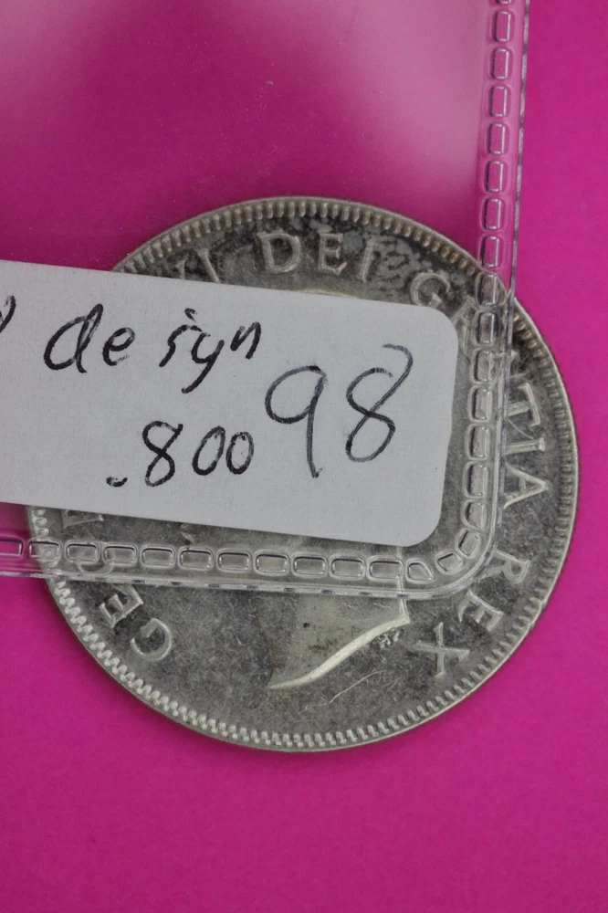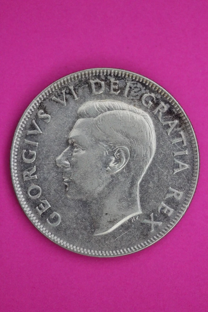 Certification Number: na Coin: Silver Half Dollar Country/Region of Manufacture: Canada Brand/Mint: Royal Canadian Mint Year: 1950 Composition: Silver Fineness: 0.800 Precious Metal Content per Unit: 0.3oz Total Precious Metal Content: 0.3oz Strike Type: Business Certification: Uncertified Grade: Ungraded