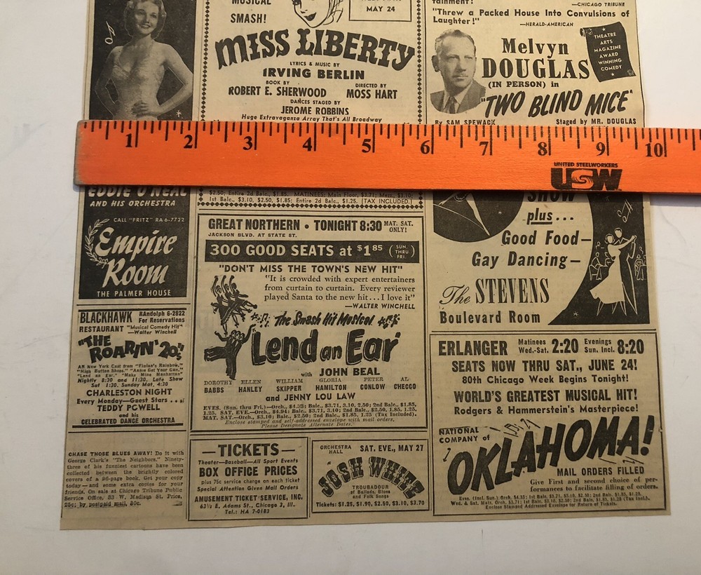 $ 12.67VTG Chicago Amusement Theatre Authentic Newspaper Clippings 0C25