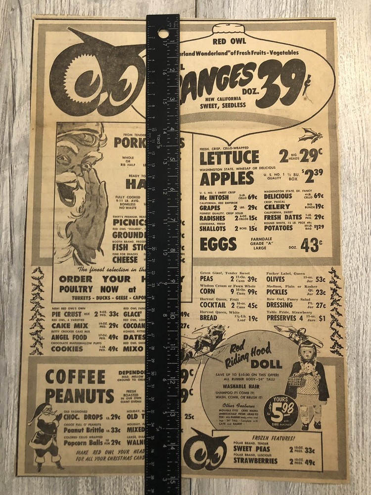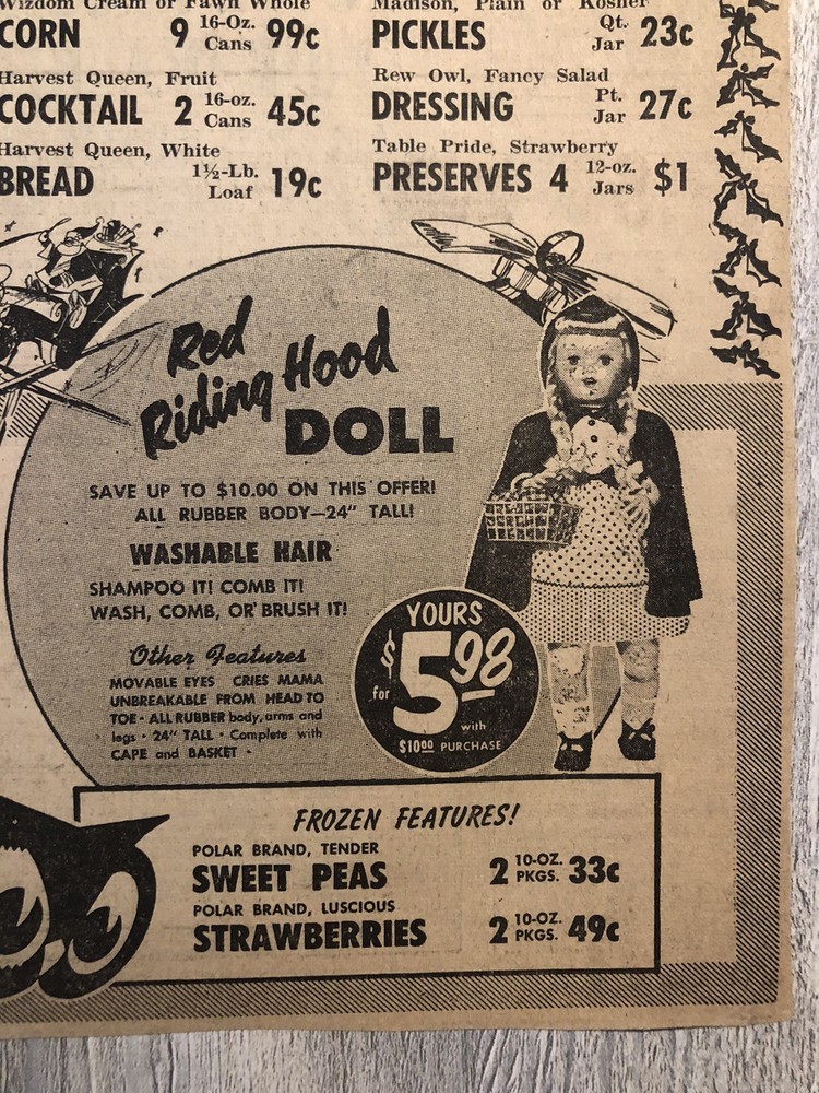 Vintage Red Owl Grocery Store Halloween Black Cat Witch Newspaper Ad 0C25