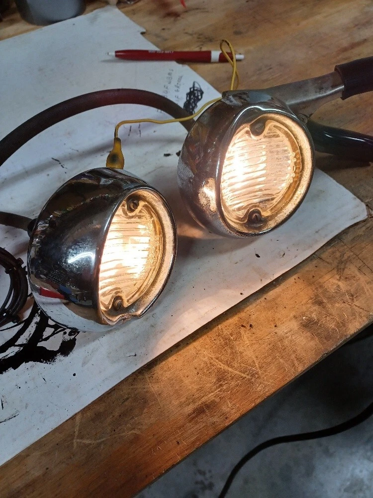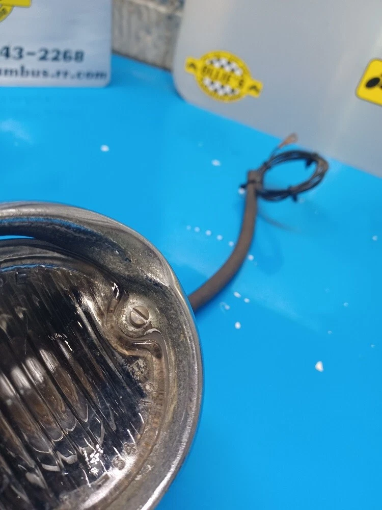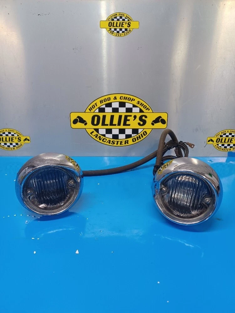 HERE IS A PAIR OF REVERSE / BACKUP LIGHTS FOR WHAT I THINK FIT 54-55 OLDS AND POSSIBLY 1958 CHEVY WAGON AND DELIVERY? THESE LIGHTS HAVE BEEN TESTED WITH 6 VOLT AND THEY WORK. THE BACK OF THE HOUSINGS HAVE BEEN COATED WITH POR-15. ON BOTH LIGHTS THE CHROME BEZELS ARE DENTED. I DID NOT TAKE THE LIGHT APART SINCE THEY WORKED. THIS WOULD BE NICETHE WAY THEY ARE FOR AN OLD SCHOOL HOT ROD OR CUSTOM, RESTORED OR USED FOR PARTS. PLEASE LOOK AND DECIDE FOR YOURSELF. THANK YOU. PLEASE CHECK LISTED SHIPPING OPTIONS.