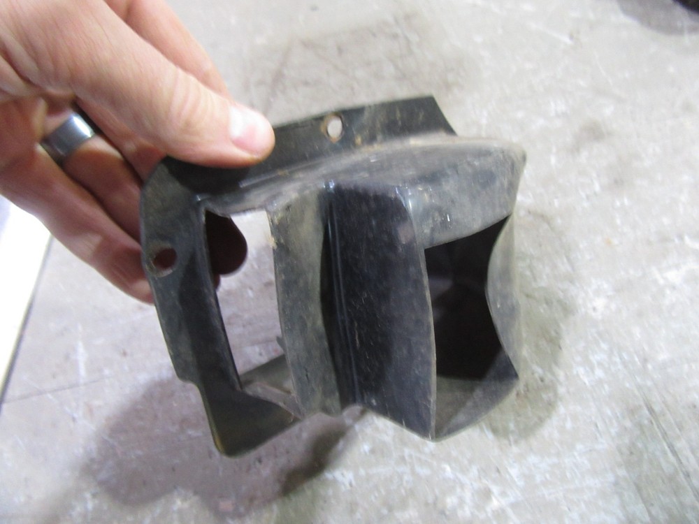 This is the interior heater duct plastic vent piece removed from a 1957 Oldsmobile Super 88 two door hardtop. Not sure where it went but in ok shape a little warped from over the years but still usable. The product is a vintage plastic vent piece for the interior heater duct of a 1957 Oldsmobile Super 88. Made in the United States, this unique part is designed specifically for this classic car model, providing a genuine authentic look and feel to the vehicle's heating system. This piece is not a universal fitment, ensuring compatibility and proper functionality for the specified car make and year. It is a part that contributes to the overall performance and aesthetic of the car, making it a valuable addition for collectors and enthusiasts of vintage automobiles.
