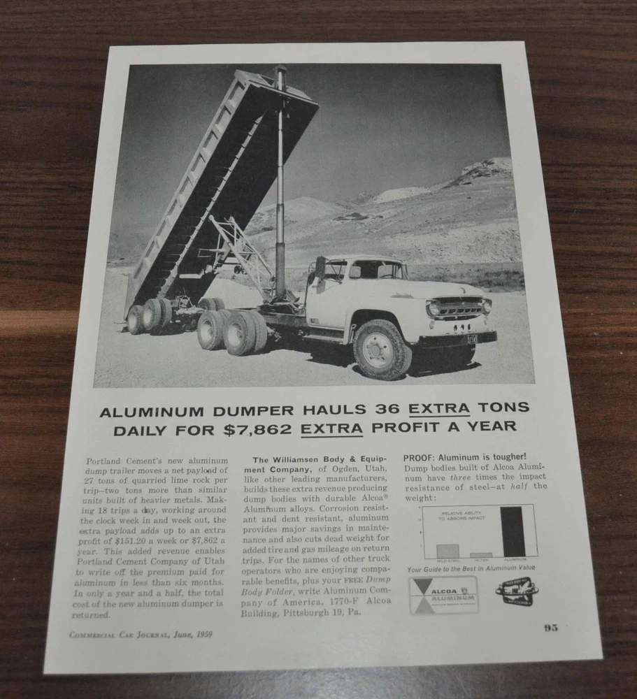 1959 Ford Truck Ad Dump Trailer Alcoa Aluminum Portland Cement's Du Pont Dulux
