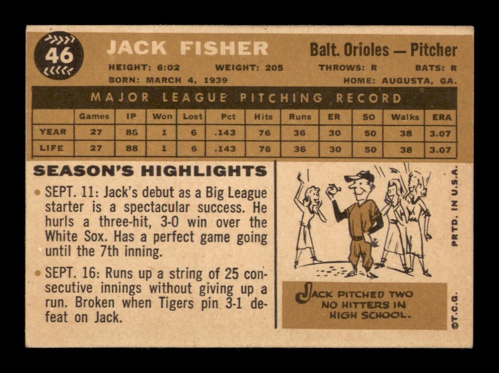 Card Manufacturer: Topps Year: 1960 Sport: Baseball Player: Jack Fisher Season: 1960 Graded: No Original/Reprint: Original