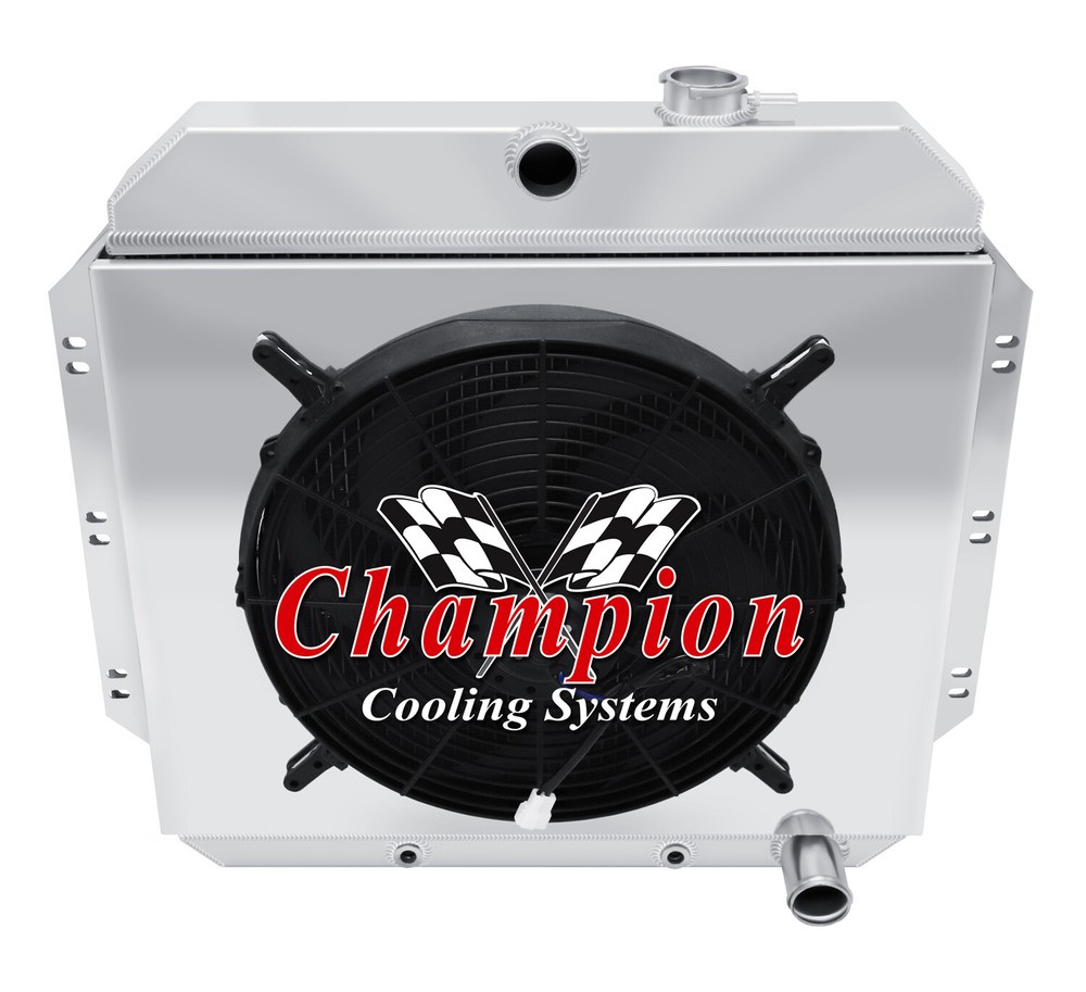 Champion Cooling radiators are tig welded with aircraft grade aluminum. Every radiator comes with a limited lifetime warranty so you can buy with confidence! Product Specifications: Core (H x W): 18.875" x 21.75" - Overall (H x W): 25" x 26.625" - Hose Locations (In x Out): Center x Pass - Hose Fittings (In x Out): 1.5" x 1.75" - TOC: 1/2-20 Straight Thread, Inverted FlarePlease click on the "Read more" link below to view a complete item description with product videos and additional items to upgrade your cooling system. PART INFORMATION Shipping Payment Policies Contact Us Part Information Related Items Genuine Champion Cooling Systems Part #AE6062 Features Higher density core: cooling rows are spaced 3/8" apart: giving you 25% more rows within the core than other aluminum radiators sold on eBay and 35% more rows than OEM copper. Aluminum dissipates heat more efficiently than copper or brass. 14-16 cooling fins per inch (42 per square inch) giving you approximately 1500 more cooling fins than other aluminum radiators and approximately 3000 more than OEM copper radiators. Lighter weight. Outperforms other 2, 3 and 4 row copper radiators. High performance appearance. You get "BIG BLOCK COOLING" and "PEACE OF MIND" when you drive your car with a Champion Cooling Systems radiator. You could easily spend $400 - $1,000 more for a radiator of similar quality. Needs modifications to your radiator? We can do them! Brackets, inlet/outlet size changes, whatever you need. Polishing also available! Please allow additional shipping time for any of these services. Specifications Down Flow Or Cross Flow Type: Down Flow Mounting Type: Bracket Tank Material: Aluminum Core Material: Aluminum Overall Height: 25 Overall Width: 26 5/8 Core Height: 18 7/8 Core Width: 21 3/4 Inlet Location: Center Inlet Diameter: 1 1/2 Outlet Location: Passenger Outlet Diameter: 1 3/4 Core Row Quantity: 2 Row with 1" Tubes Transmission Oil Cooler Fitting Type: 1/2-20 Straight Thread, Inverted Flare Internal Transmission Oil Cooler: Yes Filler Neck Attached: Yes Core Thickness: 2 1/4 Core Tube Width: 1 This package includes a 2 Row All Aluminum Radiator with 1" tubes, a fan shroud and a 16" electric fan. Shipping Shipping Our radiators are hand packed in the factory box and shipped via FedEx with insurance. Call for extra shipping rates to Hawaii, Puerto Rico, & Alaska International shipments are via FedEx International. Payment Pay securely with any major credit card! Guarantee Policies We will refund (or exchange after 60 days) 100% of your money (Including All Shipping Costs) If: Your radiator does not fit Your radiator does not cool your engine Your radiator leaks Contains manufacture's defects Or for some reason you just do not like it Contact Us © 2009 - 2017