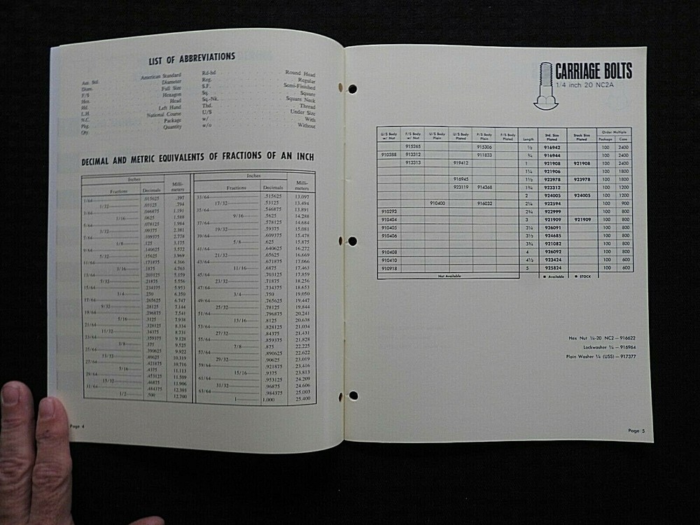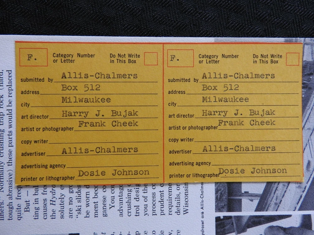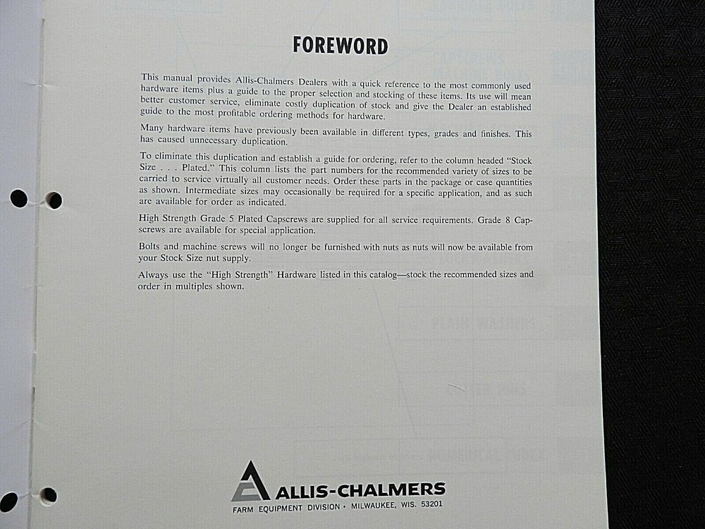We had acquired a rare collection of Allis-Chalmers brochures and literature from the estate of Harry J. Bujak. After serving in WWII, Mr. Bujak was a graduate of the Layton School of Art. Harry worked for Allis-Chalmers for over 20 years retiring in 1981 as AC's art director. Harry was responsible for the drawing, design, and publication of Allis-Chalmers brochures and sales literature from about 1960-1981. Harry was President of Illustrators and Designers of Milwaukee and was also an active member of the Milwaukee Art Directors Club until his passing in 2018 at the age of 99. We had about 50 pieces from this collection with almost all being signed by Harry. This one is an ORIGINAL 1960's "Allis-Chalmers Standard Packaged Hardware" sales catalog brochure. This 31-page brochure contains lots of hardware sizes and AC part number information. This one was Harry's and is signed on the front cover (please see pics). Tag in last photo is not included, used for reference only. This catalog has NO tears, tatters, or creases and is in NEAR MINT overall condition. FREE S & H. Thanks for viewing.............Triple K