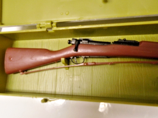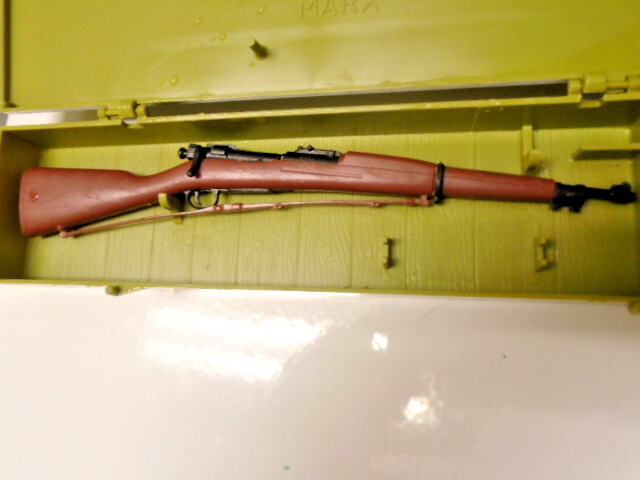 Here is one of MARX manufactured mini models with its storage/display box, " The 1903 Springfield rifle ". The piece is 9" long and in excellent condition after all these years. This is one of MARX iconic ' HISTORICAL GUNS ' series of models. A paper brochure by MARX is also present. Perhaps you would like to add this piece to your , MARX series of mini fire arms. Thanks for looking !