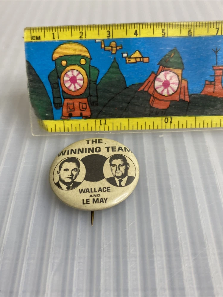 1960's Presidential Election " The Winning Team - Wallace & LeMay" White Pin. Condition is Used. Shipped with USPS Ground Advantage.