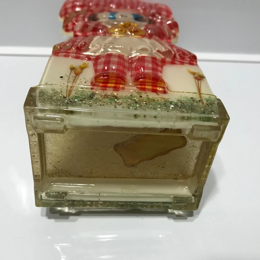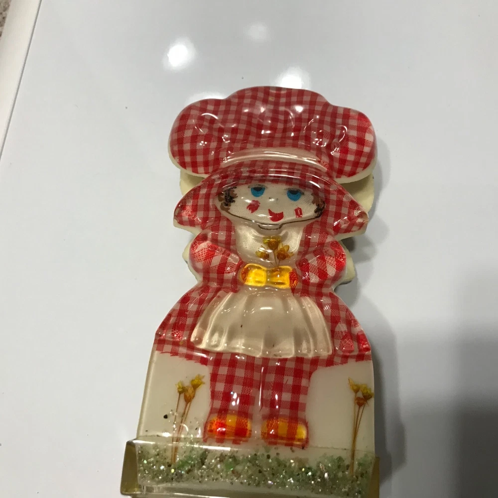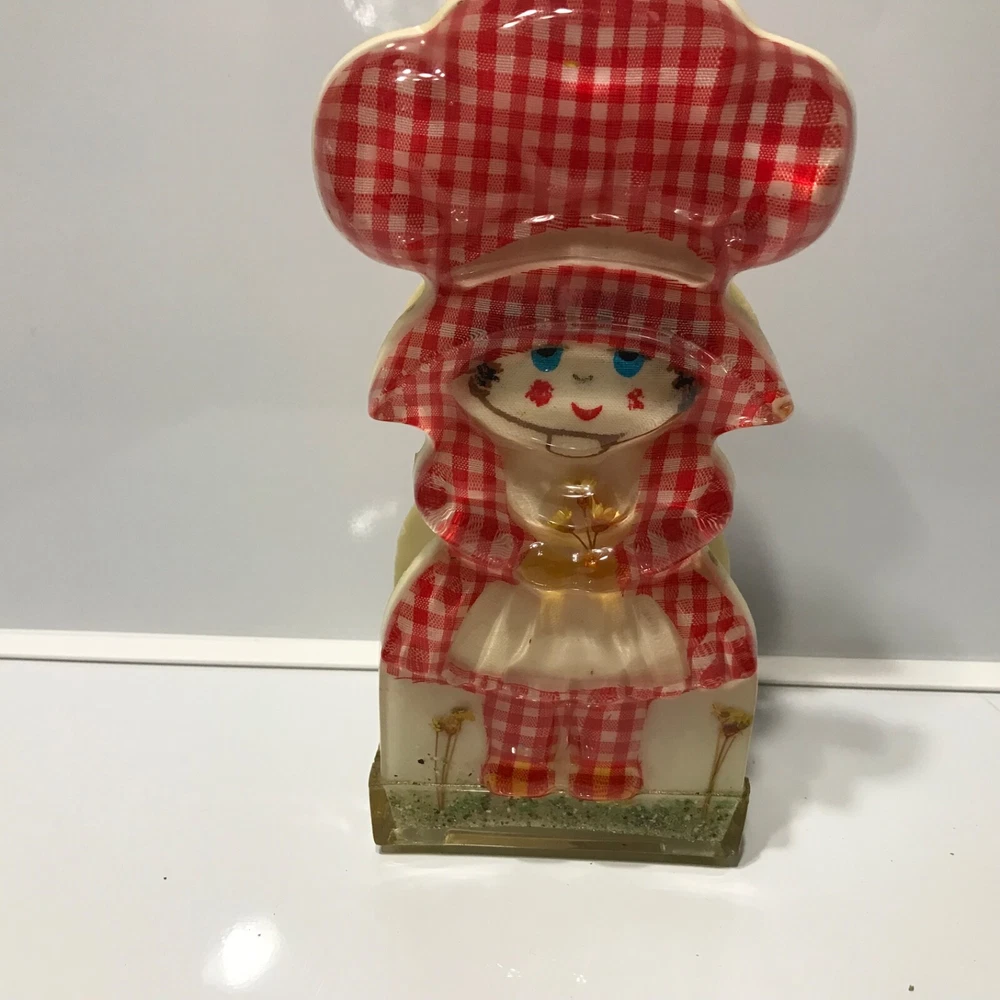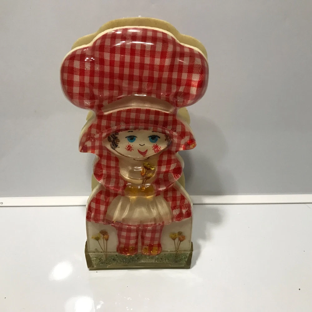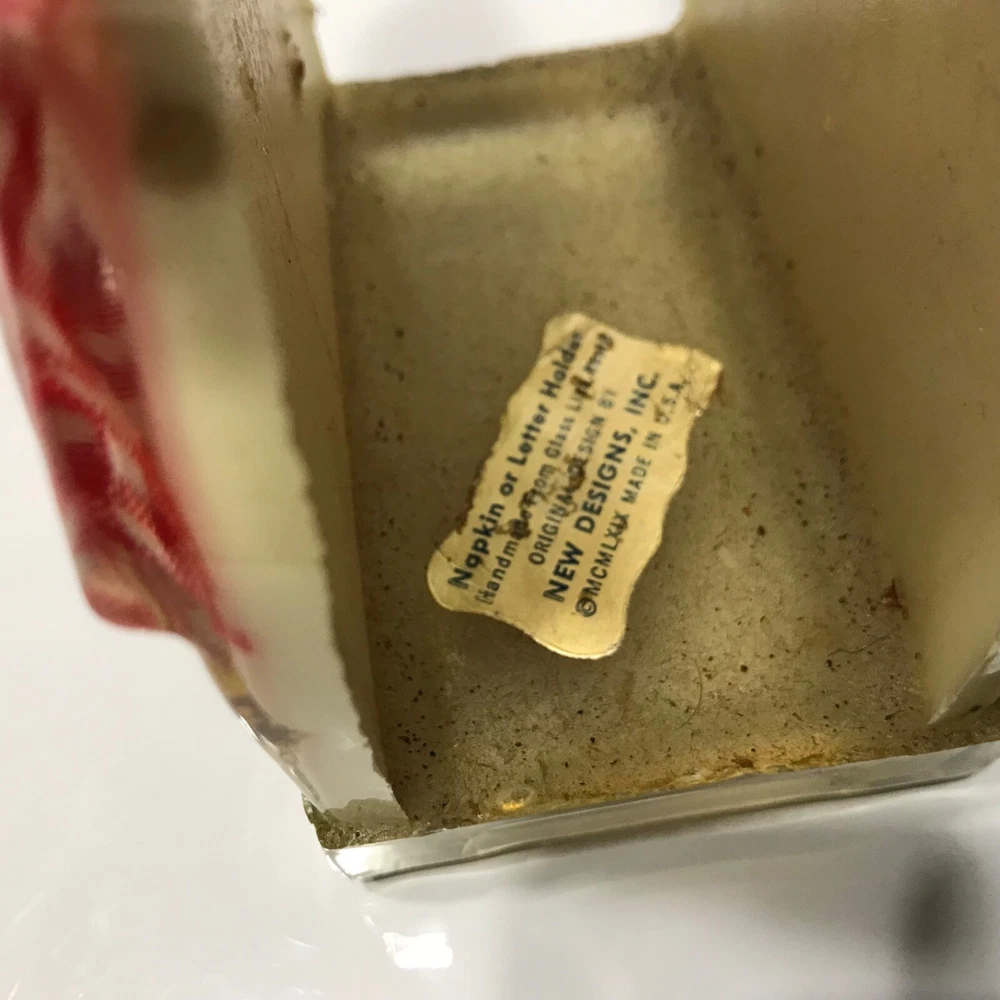 Double sided napkin or letter holder made in 1969 by New Designs Inc. in the United States. No chips or cracks. The inside edges are rough but I think it’s because of how it’s made. It measures 7 by 2 x3.50 inches. It has the original paper label. Color is good.