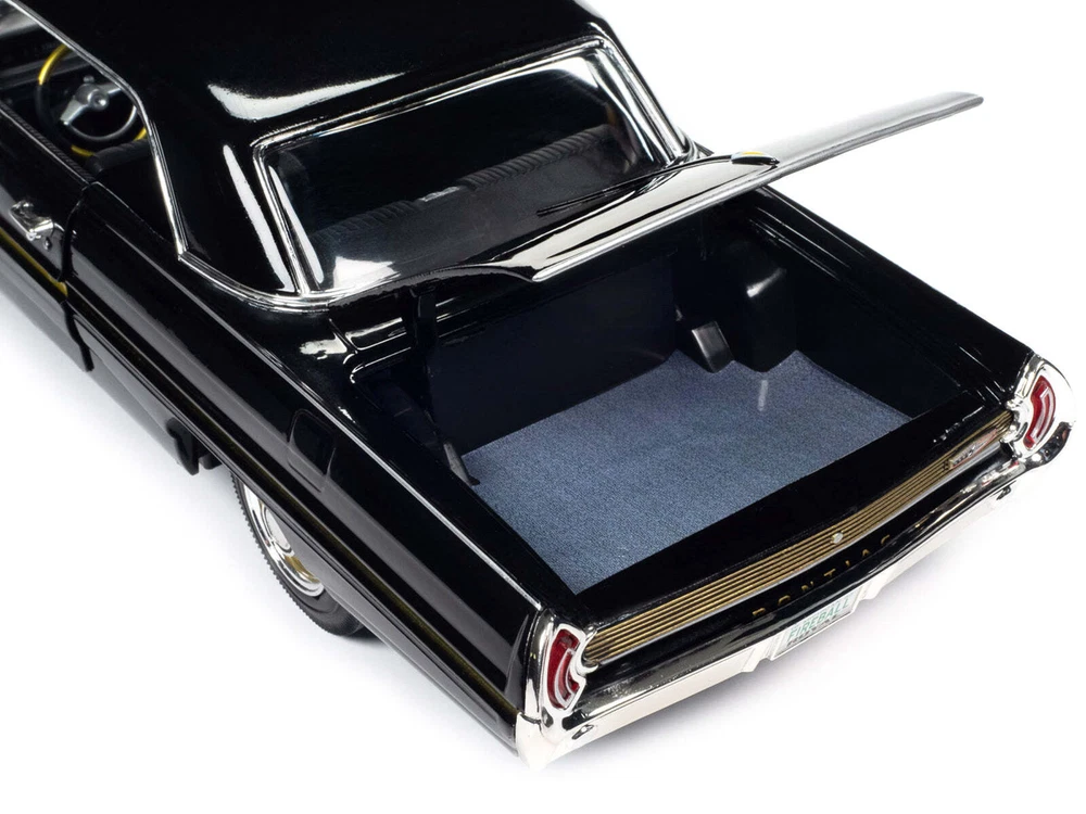 1962 Pontiac Grand Prix "Fireball Roberts Edition" 1/18 Diecast Model Car Brand new 1/18 scale diecast car model of 1962 Pontiac Grand Prix "Fireball Roberts Edition" Starlight Black with Gold Stripes die cast model car by Auto World. Limited edition. Brand new box. Real rubber tires. Has steerable wheels. Officially licensed product. Accurate interior and chassis. Has opening hood, doors and trunk. Made of diecast with some plastic parts. Detailed interior, exterior and engine compartment. Dimensions approximately L-11.25, W-4, H-3 inches. The year was 1962. Cheering on NASCAR had become an American pastime. However, the rock stars behind the wheel were essentially piloting the very same cars that enthusiasts could buy at their local dealership. Edward Glenn ?ˆ?Fireball?ˆ� Roberts Jr. was one such driver. His 1962 season was one for the record books. Of his 206 career races, he finished in the top-5 just shy of half the time, and in the top-10 nearly 60% of the time! In 1962, he won both the Daytona 500 and the Firecracker 250 driving a black and gold Pontiac built by the award-winning Smokey Yunick, and sponsored by Jim Stephens Pontiac of Daytona Beach. To commemorate his astounding season, Stephens Pontiac developed the 1962 Pontiac Grand Prix ?ˆ?Fireball?ˆ� Roberts Edition. It was painted rich Starlight Black with the same gold accents as Roberts?ˆ™ winning racer. Under the hood was the dealer-installed 421ci powerplant. Only about 30 of these historic and rare cars were ever produced by the dealership! 1962 Pontiac Grand Prix "Fireball Roberts Edition" 1/18 Diecast Model Car Brand new 1/18 scale diecast car model of 1962 Pontiac Grand Prix "Fireball Roberts Edition" Starlight Black with Gold Stripes die cast model car by Auto World. Limited edition. Brand new box. Real rubber tires. Has steerable wheels. Officially licensed product. Accurate interior and chassis. Has opening hood, doors and trunk. Made of diecast with some plastic parts. Detailed interior, exterior and engine compartment. Dimensions approximately L-11.25, W-4, H-3 inches. The year was 1962. Cheering on NASCAR had become an American pastime. However, the rock stars behind the wheel were essentially piloting the very same cars that enthusiasts could buy at their local dealership. Edward Glenn ?ˆ?Fireball?ˆ� Roberts Jr. was one such driver. His 1962 season was one for the record books. Of his 206 career races, he finished in the top-5 just shy of half the time, and in the top-10 nearly 60% of the time! In 1962, he won both the Daytona 500 and the Firecracker 250 driving a black and gold Pontiac built by the award-winning Smokey Yunick, and sponsored by Jim Stephens Pontiac of Daytona Beach. To commemorate his astounding season, Stephens Pontiac developed the 1962 Pontiac Grand Prix ?ˆ?Fireball?ˆ� Roberts Edition. It was painted rich Starlight Black with the same gold accents as Roberts?ˆ™ winning racer. Under the hood was the dealer-installed 421ci powerplant. Only about 30 of these historic and rare cars were ever produced by the dealership! × × × × × × Shipping info Click the Shipping & Payments tab above the listing description for more info FREE Shipping Click the Shipping & Payments tab above the listing description for more info! Additional delivery notes PICK UP OPTION Sorry, our items are NOT available for pick-up. PAYMENT Immediate payment is required upon selecting "Buy It Now" or upon checking out through the cart. We accept payment via U.S. PayPal accounts and all Major Credit Cards, Debit Cards & Google Pay. We are legally required to collect sales tax in those states and localities where we maintain a physical presence (nexus). The applicable amount of sales tax charged to an order will be calculated based on the shipment destination's state and local sales tax laws. Thank you for shopping with us on eBay! Additional Information No additional information at this time Ask seller a question You might also like Lamborghini Huracan GT "LB-Silhouette Works" White with Black 1/18 Model Car 1966 Pontiac GTO "Restomod" Yellow and Dark Gray Metallic 1/18 Diecast Model Car 1973 Jeep CJ-5 "Super Jeep" White with Red and Blue 1/18 Diecast Model Car Boeing 777-200ER Commercial Aircraft with Flaps 1/400 Diecast Model Airplane Contact To contact our Customer Service Team, simply click the button here and our Customer Service team will be happy to assist. Ask seller a question © Lodya Shipping & Payments Shipping is FREE for this item Payment Accepted Payment Methods Immediate payment is required upon selecting "Buy It Now" or upon checking out through the cart. We accept payment via U.S. PayPal accounts and all Major Credit Cards, Debit Cards & Google Pay. We are legally required to collect sales tax in those states and localities where we maintain a physical presence (nexus). The applicable amount of sales tax charged to an order will be calculated based on the shipment destination's state and local sales tax laws. Thank you for shopping with us on eBay! Returns Returns are accepted Items must be returned within 30 days of the auction ending Seller will pay for return shipping. eBay integration by