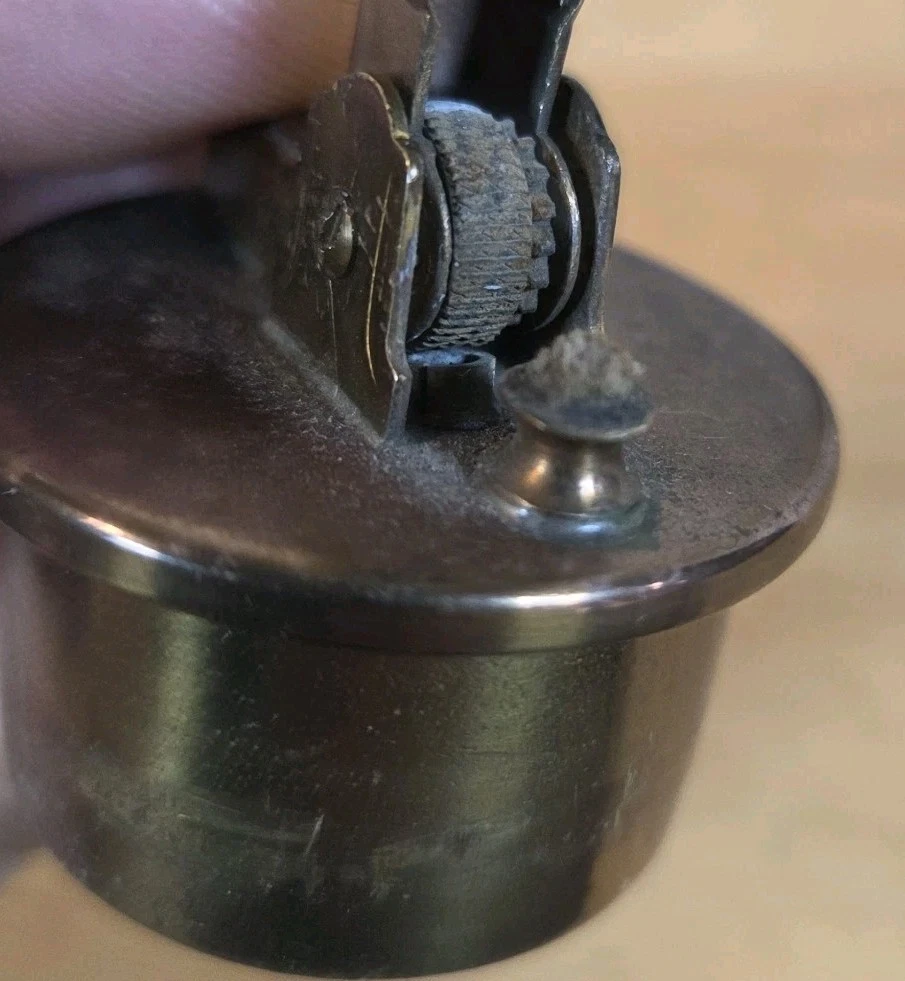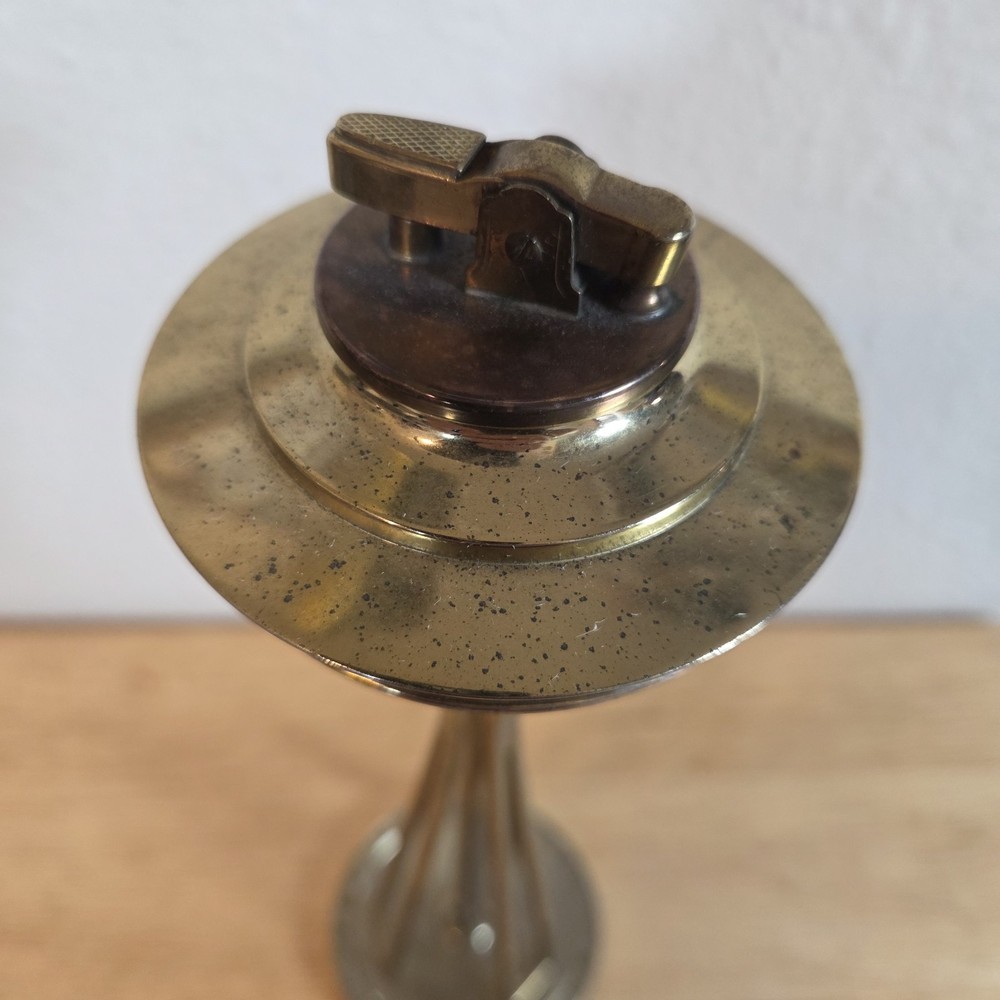 In good pre owned condition showing some wear. Lighter strike wheel spins loosely, not when pushing button so will not spark wick. Great display piece. Please examine pictures thoroughly for wear and condition.