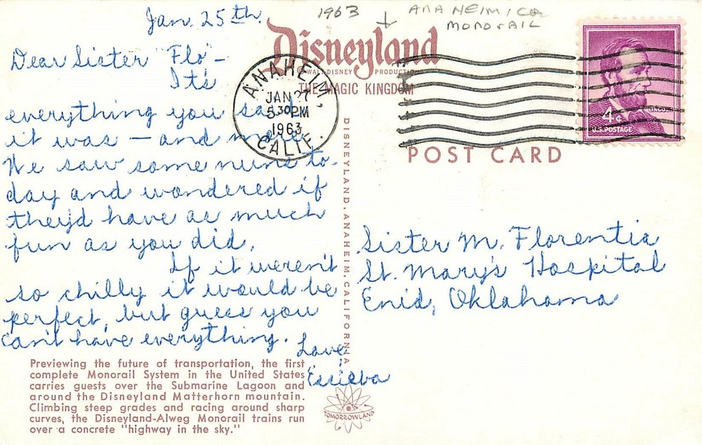 A Vintage Printed postcard as described in title, additional info is below Publisher-photographer--Artist---Disneyland card #----- no All our cards are shipped in either, a card stiffened envelope, or packages valued at $24.99 and up will be in a Rigid Shipping Envelope.