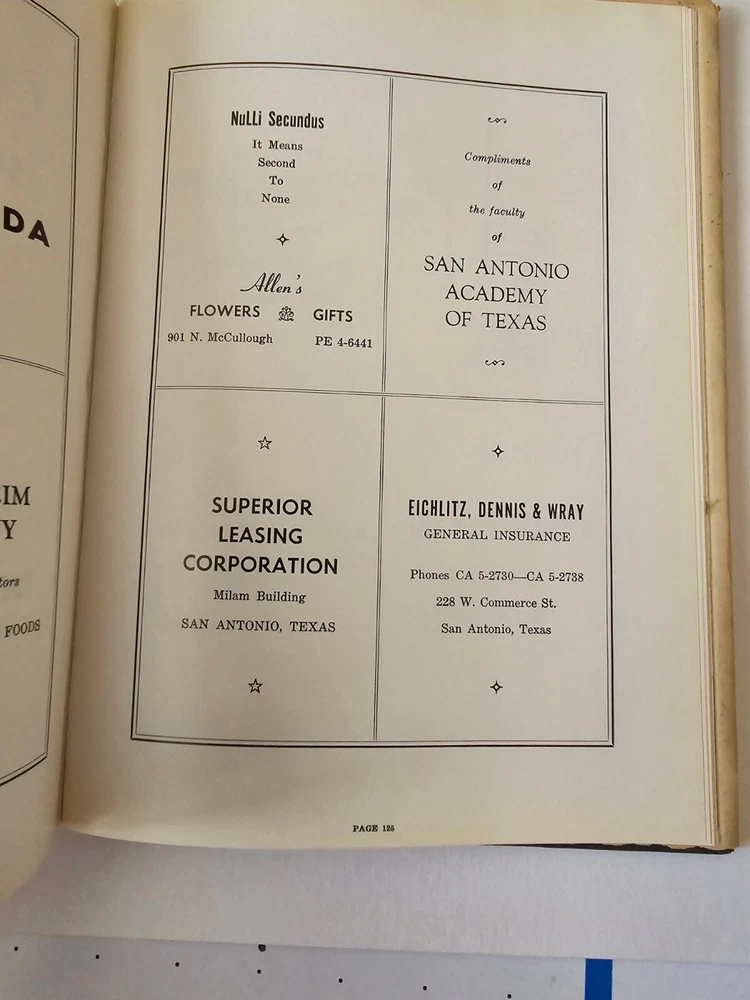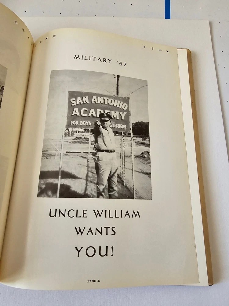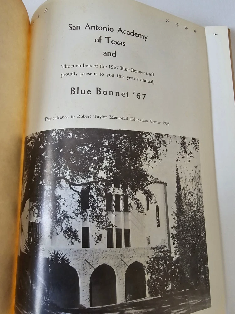 1967 "Blue Bonnet" - San Antonio Academy of Texas Yearbook - San Antonio, Texas Clean copy - no writing. Some yellowing on cover/pages See pictures for specific details.