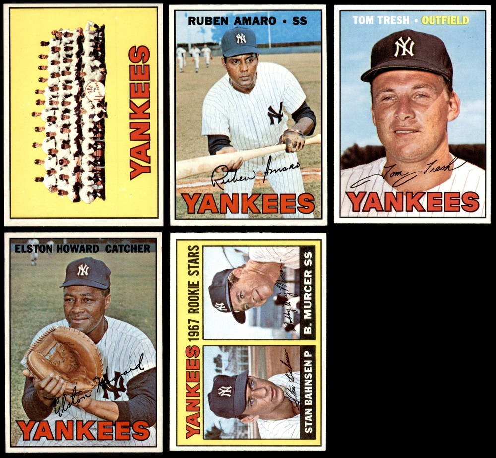This 1967 Topps Yankees near-team set is a fantastic find for collectors! The cards are in great condition, with most graded NM or better, featuring legends like Whitey Ford and Elston Howard. The rookie card of Murcer/Bahnsen is a standout, and the team card adds great nostalgia. A must-have for Yankees fans or vintage baseball card enthusiasts—solid value for the quality!