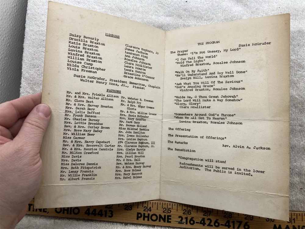 Original: 1968 Gloria Gospel Singers St. Paul Baptist Church Cinnaminson NJ Program . Please note - This was removed from an old scrap book. There may be glue residue, staple marks, paper stuck to the back, tears etc. You may or may not be able to remove the residue and paper if you took your time. I have 20,000 listings and don't have the time to address it. Please see the photographs for a detailed description as it will show most blemishes that the item has. Free shipping to all US addresses. Please note, my schedule only allows me to ship once a week (Usually close orders out at 5PM on Tuesdays and ship Wednesday Mornings), If you buy on Wednesday, it most likely not ship until the following Wednesday. It can take up to 5 business days for your item to ship, or it can ship the next day if you purchase on a Tuesday. I apologize in advance, and I beg for your patience, being on the road allows me to find these few and far between items. Please let me know if you need it by a deadline for a birthday or something and I'll see what I can do. For international buyers, please inquire about shipping if the shipping is showing above $24, the prices listed are default 4lbs priority and most likely is way above what it actually costs to ship. Powered by SixBit's eCommerce Solution