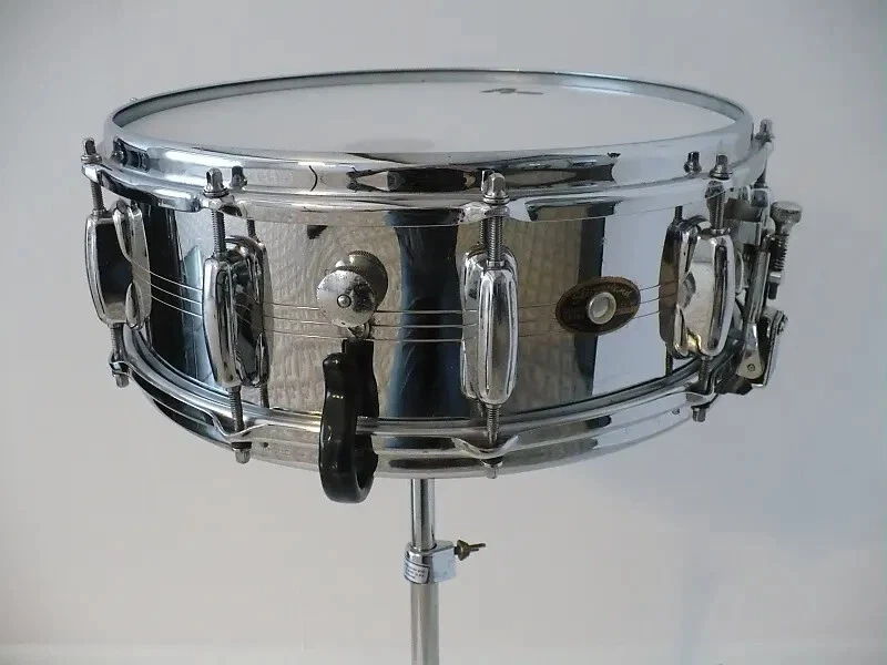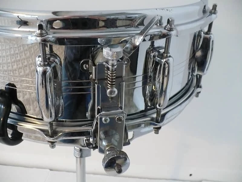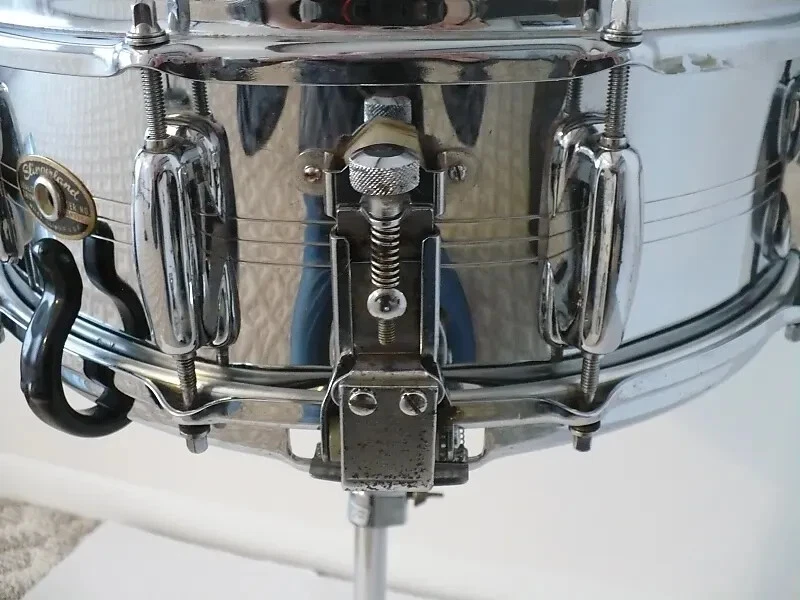 I'm listing a 1968 Slingerland Super Krupa In good working Players Condition. Snare size is 5.5" x 14" Serial number is: 193397 has 10 lugs, shell and hoops are brass. muffler works great & is original. All factory as mentioned, minus new aftermarket tension rods batter side . new heads & Fat Cat wires, (2) small screws replaced on strainer. The shell is in-round heads spin freely & tunes right up. Strainer will adjust & release the snares fully. Chrome on shell, hoops & lugs is really clean & shows above average, shell has a few very minor scuffs .(photos won't show) hoops are nice & clean. The reason I'm listing as a players drum is the original strainer had a linkage repair .It works & will lock in place.& adjust. But not factory perfect. Also the butt end tension mechanism bottom flange plate is almost resting on the bottom hoop .(Tension adjustment is not restricted.) Also there is chrome loss on the various parts of each strainer. (see Photo's) It's a great sounding snare drum, perhaps the warmest brass snare I've come across. Seems to me these Super Krupa's brass are on the rare side? If your a collector and/or would like a perfect time capsule this one is Not for you. Selling as is per description, Shipping is lower 48 states only at this time. Questions are welcomed. Thank you