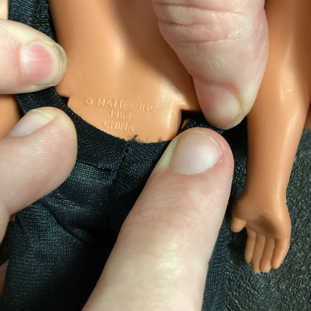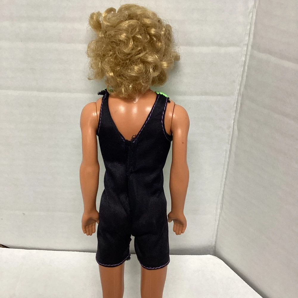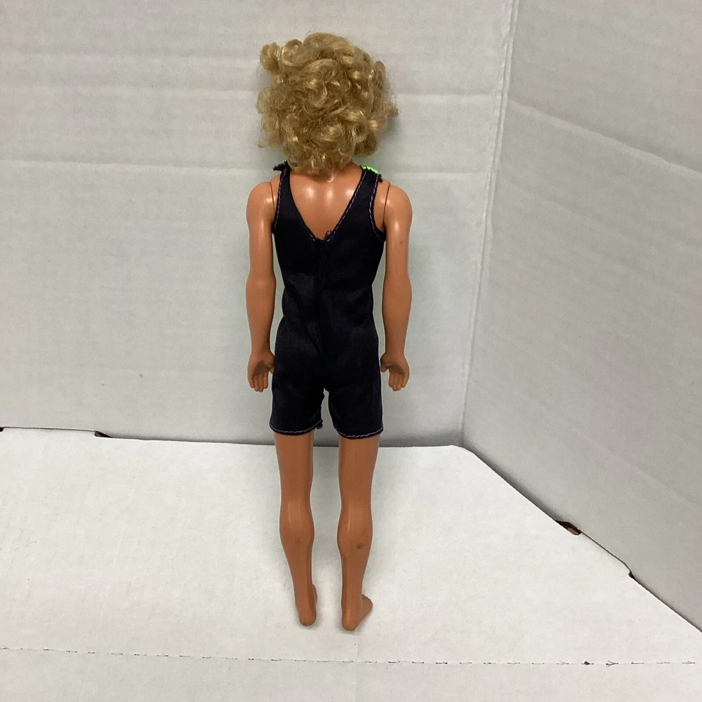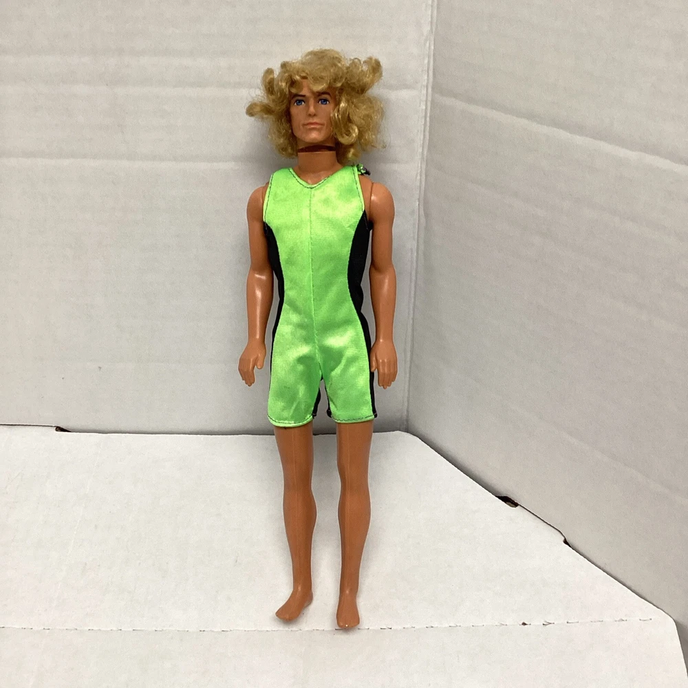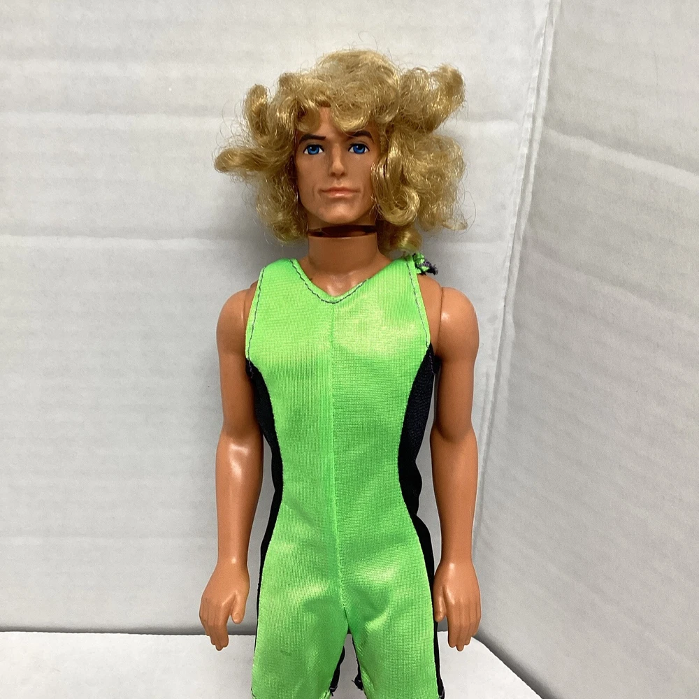 This is a rare vintage Barbie Ken doll from 1968, featuring a green suit and curly blonde hair. The doll has a light complexion and blue eyes, and is a 12 inch fashion doll with a boy doll gender. It is a Barbie Collector product line and comes with the doll only, as seen in the pictures. This antique doll is perfect for collectors and doll enthusiasts alike, and is sure to be a valuable addition to any collection.