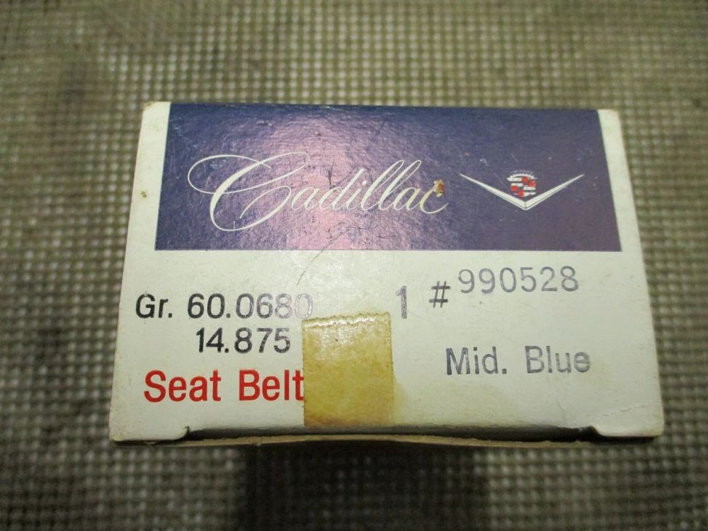 WELCOME TO MY SITE I HAVE BEEN PARTING OUT CARS AND COLLECTING PARTS FOR MANY YEARS WITH THE HOPES THAT ALL MY WORK AND EFFORT HELPS AS MANY PEOPLE AS POSSIBLE WITH THEIR RESTORATION PROJECTS. MOST OF MY PARTS UNLESS OTHERWISE STATED AS (NOS OR NEW) ARE USED AND IN "AS IS" CONDITION PLEASE BE SURE THE PART IS WHAT YOU'RE LOOKING FOR BEFORE PURCHASE. IF THERE IS ANY QUESTIONS ON THE PART, PLEASE FEEL FREE TO CONTACT ME AND I WILL ANSWER THEM TO THE BEST OF MY KNOWLEDGE. IF THERE IS ANY PROBLEMS WITH THE ITEM WHEN YOU RECEIVE IT, PLEASE BE SURE TO CONTACT ME ASAP I WILL DO WHATEVER IT TAKES TO MAKE SURE EVERYTHING IS CORRECTED RIGHT AWAY THANK YOU. This is an NOS new original GM RCF-67 blue deluxe seat belt used in several 1968-71 GM Cadillac, Buick, Oldsmobile, Pontiac and Chevrolet cars . Condition is NOS new, in original box but has been opened , ready to install . PAYMENTS MUST BE MADE WITH PAYPAL OR CREDIT CARD AS SOON AS PURCHASE IS COMPLETE. All my items will go out by USPS mail or Fed EX depending on size or weight within 24 hours of the purchase unless some unforeseen problem arises. Local pickups are always welcome! Please be sure to add bm455 to your favorites list and check out my E-bay store for more inventory of GM Chrysler and Ford parts at Buy It Now prices! Thanks so much for looking hope we can do business TODAY!!