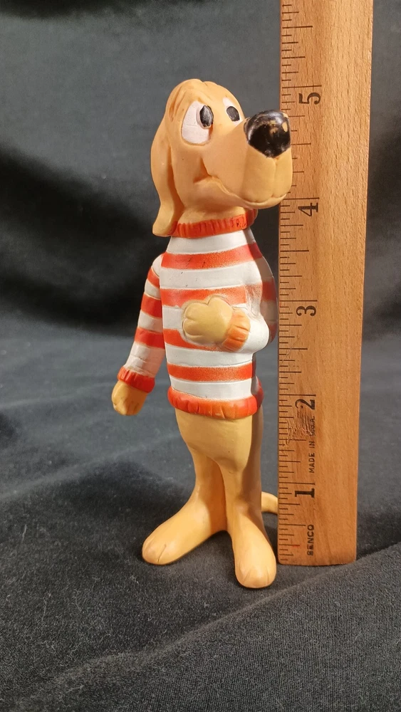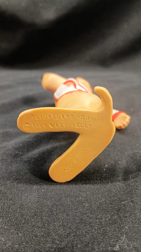 This vintage toy figure of Beauregard Hound from Walt Kelly's comics is a must-have for collectors. Made in Japan in 1969, this 5-inch action figure is an original and licensed reproduction. The multicolor vinyl material gives it a unique look, and it comes without packaging. The figure is perfect for display and play and would make a great addition to any collection. The item is a custom bundle with no personalization, and it is not signed. Don't miss out on the chance to own a piece of cartoon history with this Walt Kelly Beauregard Hound vinyl figure. Thank you for visiting my listing today and thank you for your interest in this item! My goal is to have a pleasant transaction resulting in a satisfied customer. I hope any transaction between us leaves you with a feeling of confidence knowing you can trust me and the items I offer here. *Most if not all my listings are set to accept offers. Feel free to send an offer and I will be happy to consider it!! *Please contact me with any questions or concerns and I will be happy to help. *Always examine the photos carefully, and if in doubt, email me with any questions you may have. *Please note that condition statements are offered as a guide only. They will always be somewhat subjective and reflect our opinion, which may not necessarily agree with someone else's opinion. PLEASE READ: I aim to please and I want my buyers to have a positive transaction with me. If you have questions, concerns, or special requests related to any of my items I hope you will contact me so we can work them out to your satisfaction. I sell my items to give you a great item at a decent price while making a little profit at the same time. If you feel the item you are interested in is too pricey do not hesitate to send me a fair offer and I will consider it. My goal is to satisfy your needs and mine so both parties can benefit. SHIPPING: If you prefer a different shipping method or company please contact me and I will do all I can to make that happen. If you have concerns or requests about the packaging of your item contact me and I will do all I can to accommodate them. Shipping costs are based on location in each state or country, the costs always differ. After I have received your payment I will ship your item out within 3 business days or less excluding weekends and holidays. BEFORE PURCHASING & BIDDING: **Please see all the pictures. I do not have great photography skills but I try to get the most accurate photos I can. If you are unsure about something you see in a photo contact me so I can do what I am able to answer your concern about the item. **I cannot stress enough that if you have any questions or concerns please contact me before purchasing and bidding. Communication can solve so much. **As a customer myself, I understand the meaning of customer satisfaction and my goal is to have nothing but satisfied customers. If you are not unsatisfied with your purchase I ask that you please contact me so I can take care of your issue. My goal is for you to be 100% satisfied. INTERNATIONAL BUYERS WELCOMED - PLEASE NOTE: I welcome International buyers! Please be aware that any custom/duties/taxes that the parcel might incur once it is out of the USA are the responsibility of the buyer. Please check with your country's customs office to determine what these additional costs will be prior to bidding or buying. Please refer to the eBay Site Map for more information if needed.