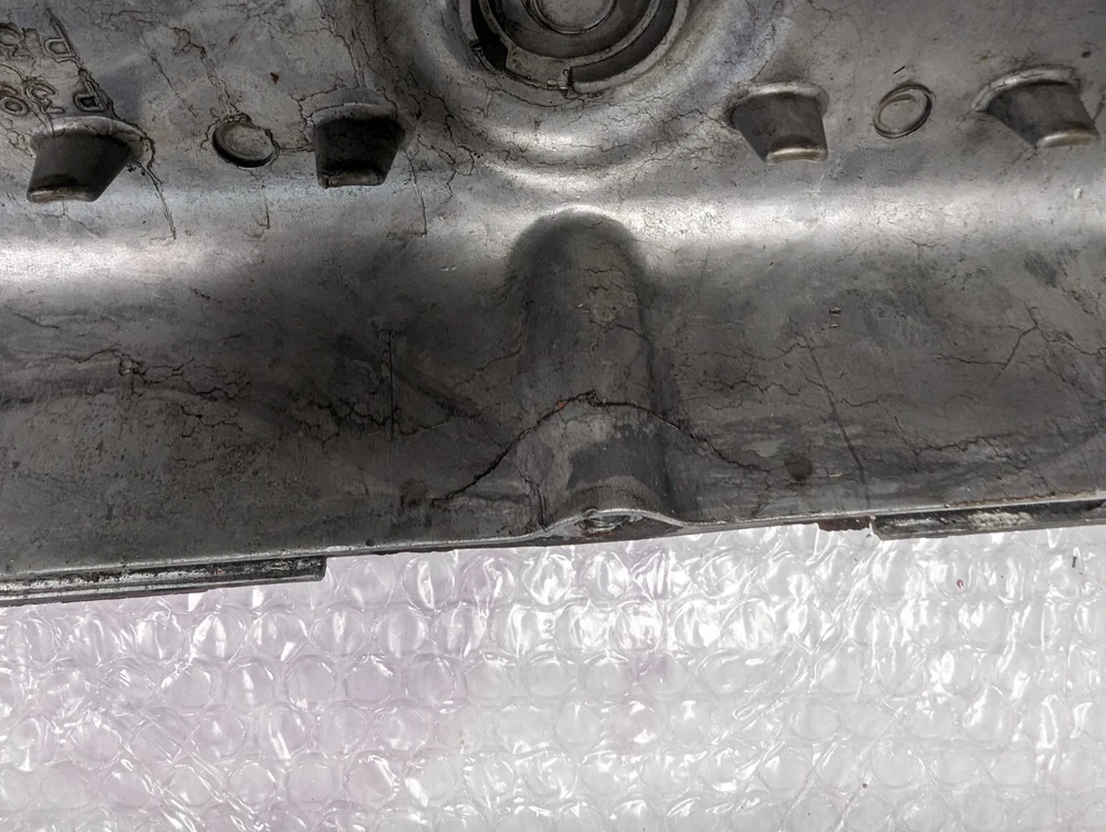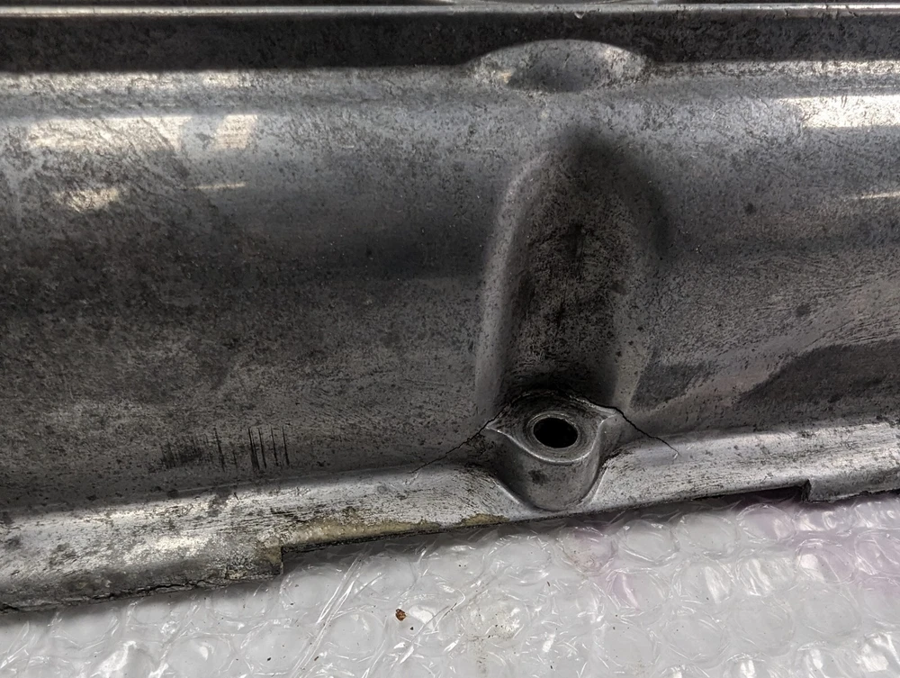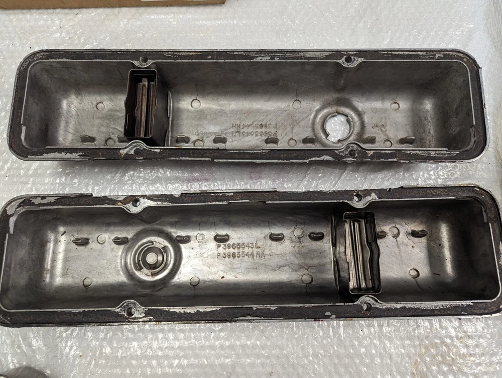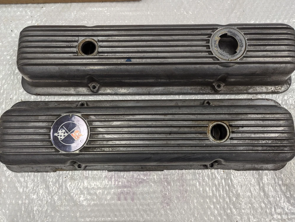 PLEASE SEE PICTURES, one valve cover has cracks by two mounting holes. It can be repaired. The one with the oil cap hole will need some welding to make work. Other cover is good. Any questions feel free to ask. Sold as is.