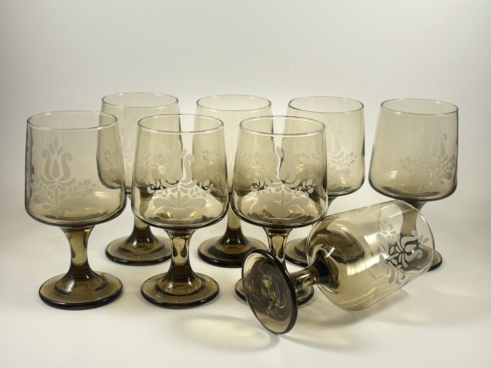 Home1970s Pfaltzgraff Village Brown Glass Pedestal Wine Glass Set of 8
