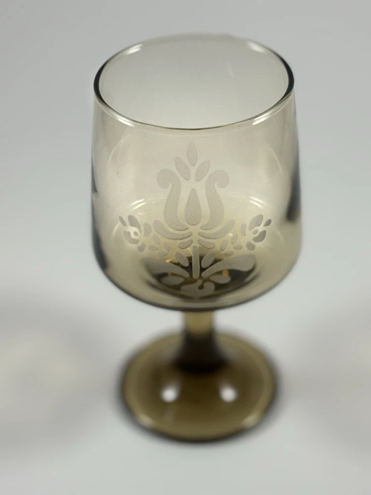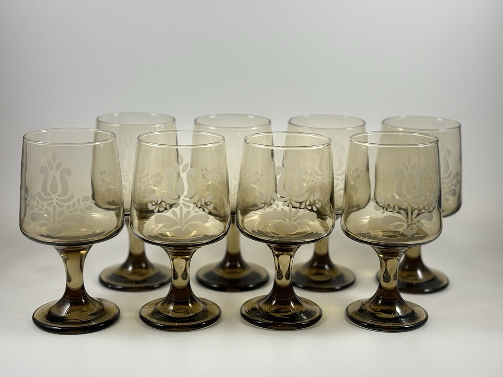 1970s Pfaltzgraff Village Brown Glass Pedestal Wine Glass Set of 8