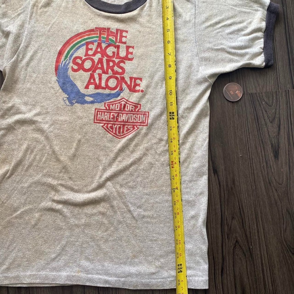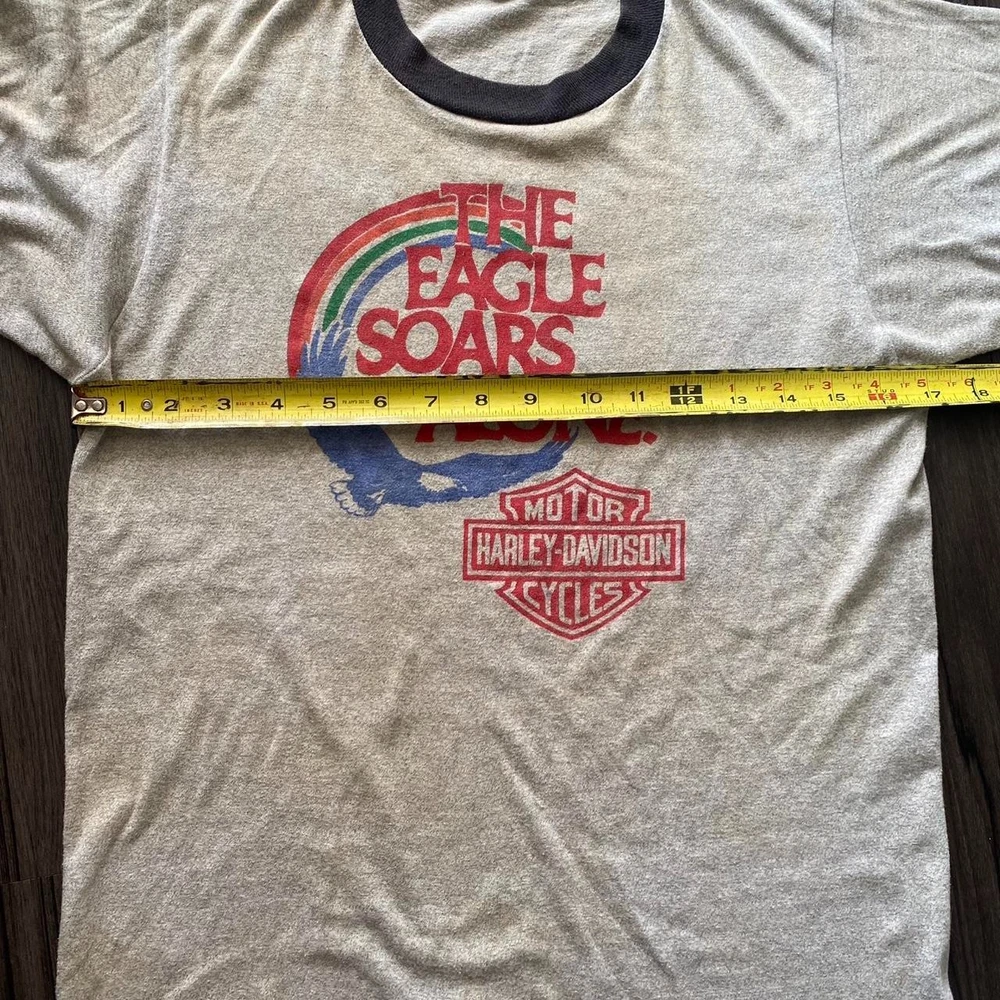 1971 harley davidson eagle ringer tee “The Eagle Soars Alone” #biker #70sfashion #70sringer #vintageharley #70sharley