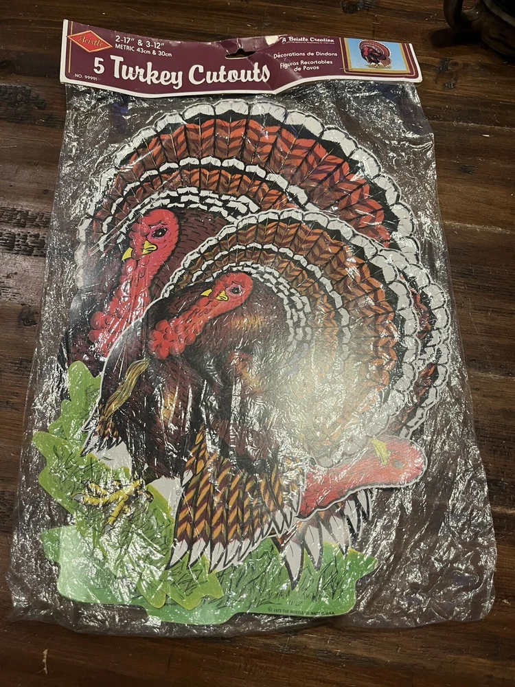 Home1972 Beistle Thanksgiving Turkey Cardboard Diecut Decorations In Orig. Pkg Of 5