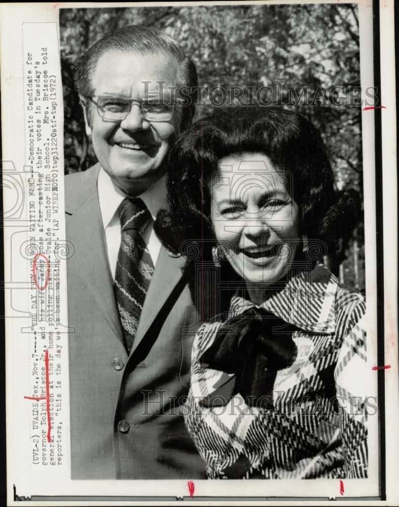 ebay template Note: Please study the images carefully to determine the condition of this vintage photograph, as it may not be in perfect condition. It may contain wrinkles, cracks, and possibly even tears due to its age and how it was handled before it got to us. A scanner may interpret colors and contrast differently than human eyes will, so it is possible that the actual photograph may be slightly darker or lighter in person. This vintage photograph is offered for sale as a collectible item and conveys no transfer of copyright. 1972 Press Photo Candidate Dolph and Janey Briscoe cast votes in Uvalde, Texas. This is an original press photo. Uvalde, TX: "The Day They Have Been Waiting For"-Democratic candidate for governor Dolph Briscoe, Jr. and his wife Janey pose after casting their votes in Tuesday's general election at their home polling place-Uvalde Junior High School. Mrs. Briscoe told reporters, "this is the day we've been waiting for."Photo measures 8.25 x 10.5inches. Photo is dated 11-07-1972. PHOTO FRONT PHOTO BACK Historic Images Part Number: hpw10879 Sell Smarter with Kyozou. Inventory and Ecommerce Management
