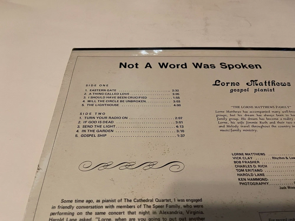 1973 LORNE MATTHEWS Not A Word Was Spoken vinyl LP Cathedral Quartet sealed
