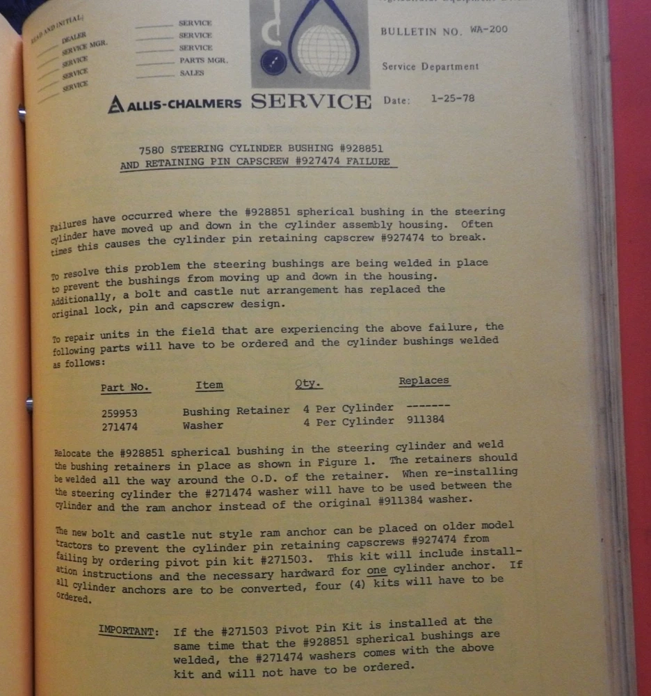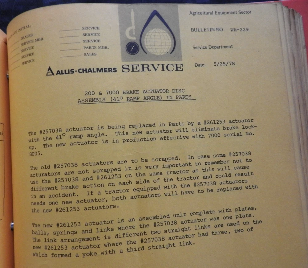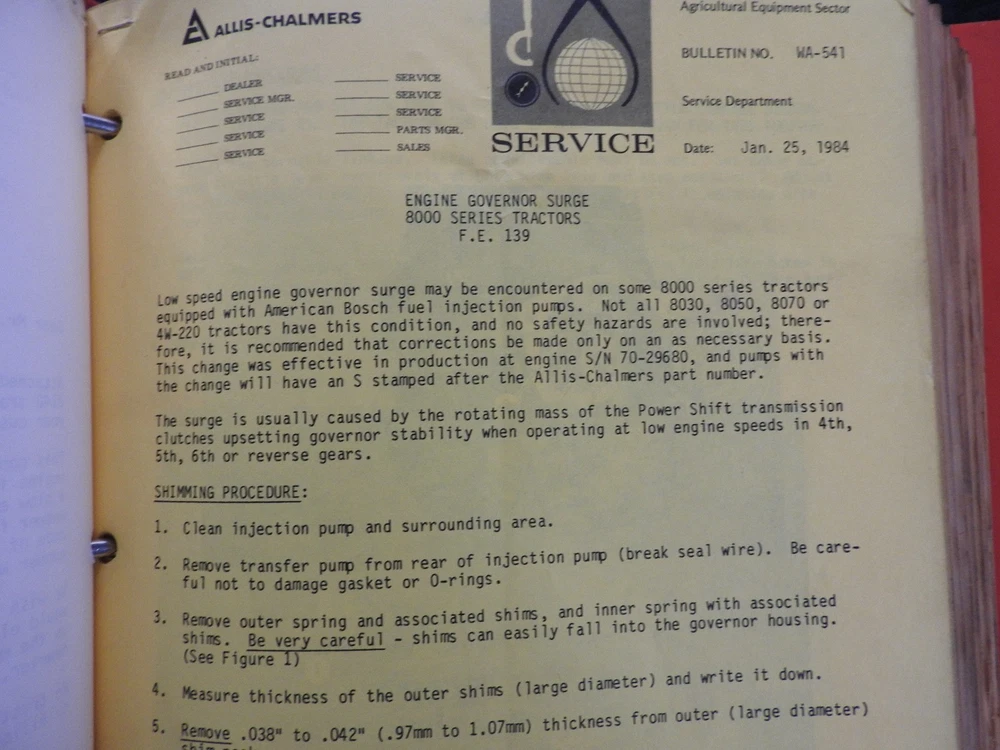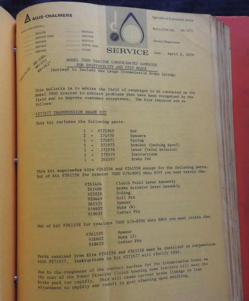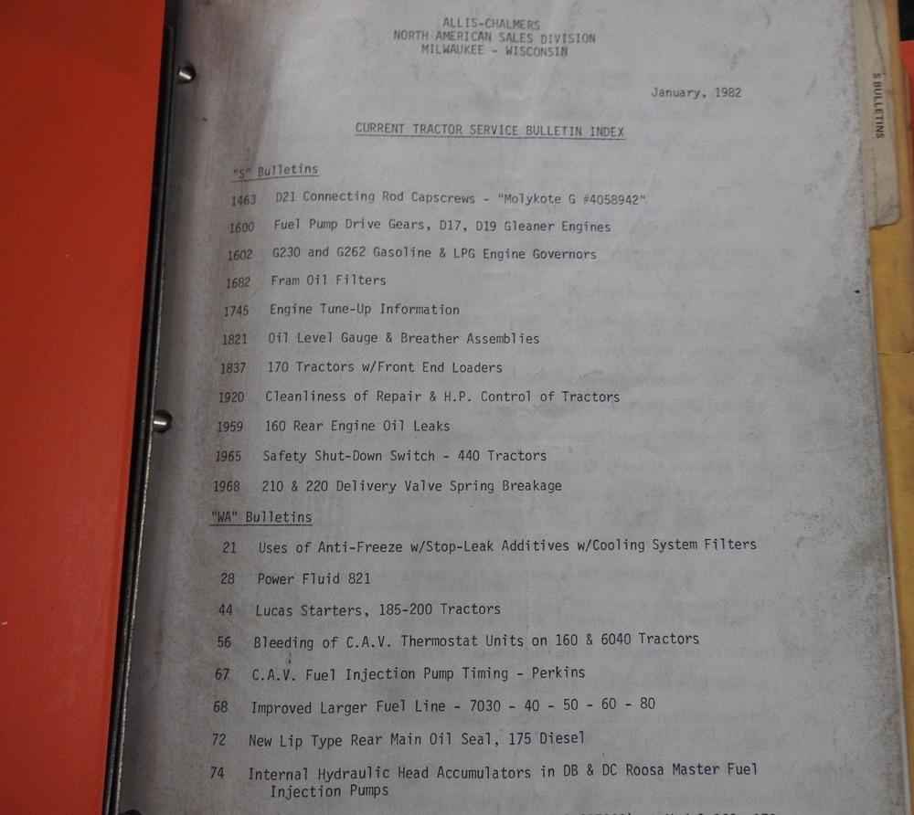 1975-1984 ALLIS CHALMERS Tractor DEALERSHIP Service Bulletin Manual RARE!