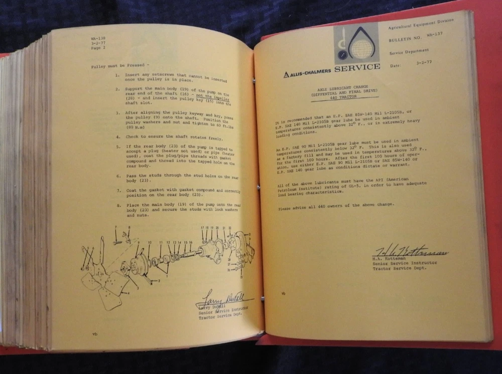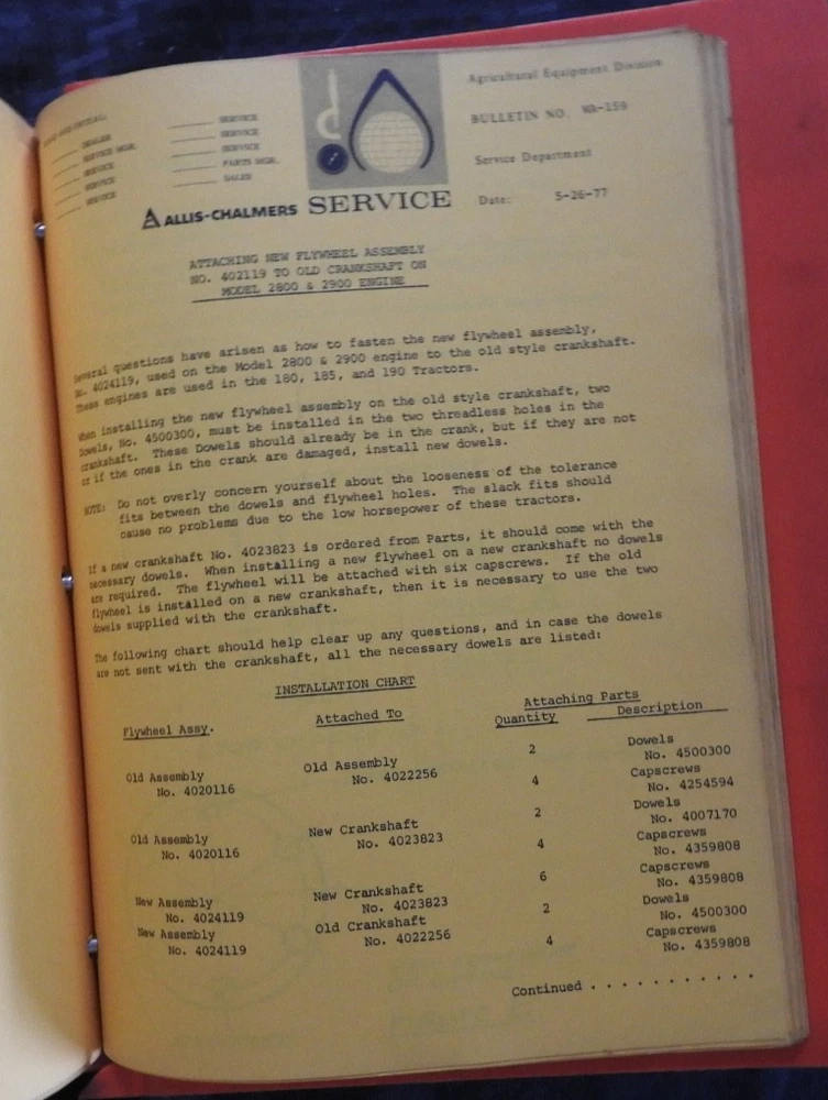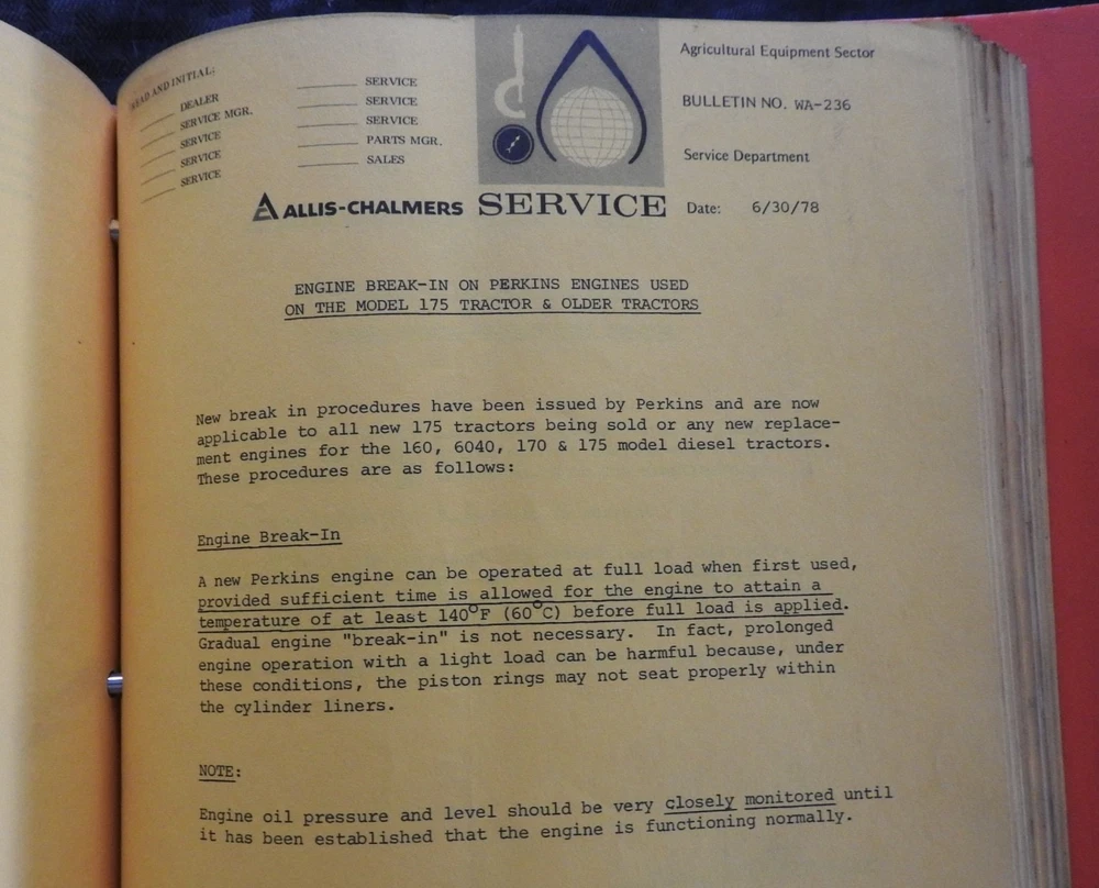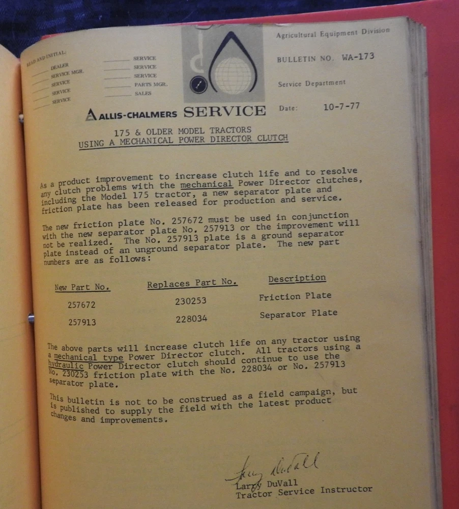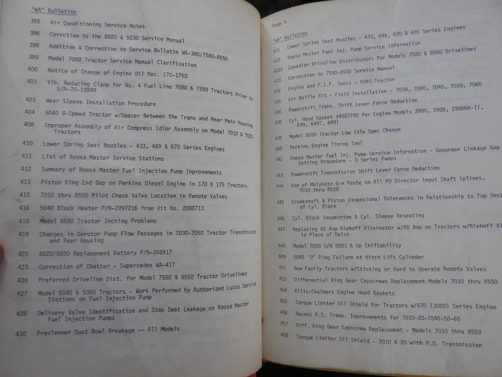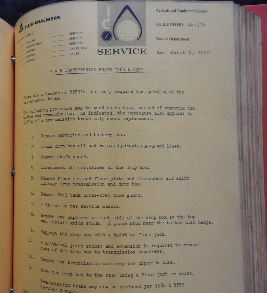 1975-1984 ALLIS CHALMERS Tractor DEALERSHIP Service Bulletin Manual RARE!