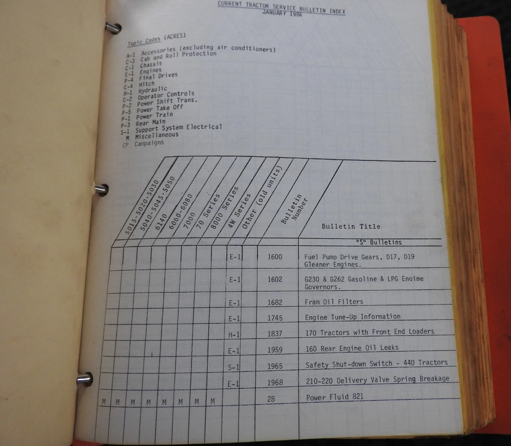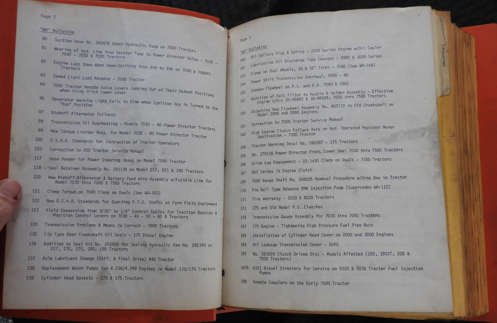Model Year: 1975-1984 Country of Origin: United States Compatible Equipment Type: Tractor Type: SERVICE BULLETIN Manual Compatible Equipment Make: AGCO, Allis Chalmers Brand: Allis-Chalmers Model: ALL TRACTOR BULLETINS Seller Notes: “Solid and complete, several hundred pages”