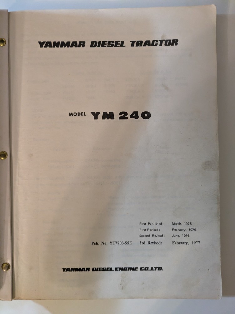 The 1977 Yanmar YM240 parts list book is a manual specifically designed for the Yanmar YM240 diesel tractor. Manufactured in Japan, this book provides detailed information on the parts and accessories needed for maintenance and repairs on this specific model. It is a valuable resource for owners and operators of Yanmar equipment, allowing them to easily identify and order the necessary components to keep their tractor in optimal working condition.