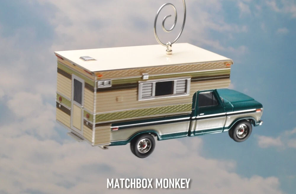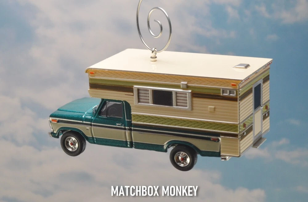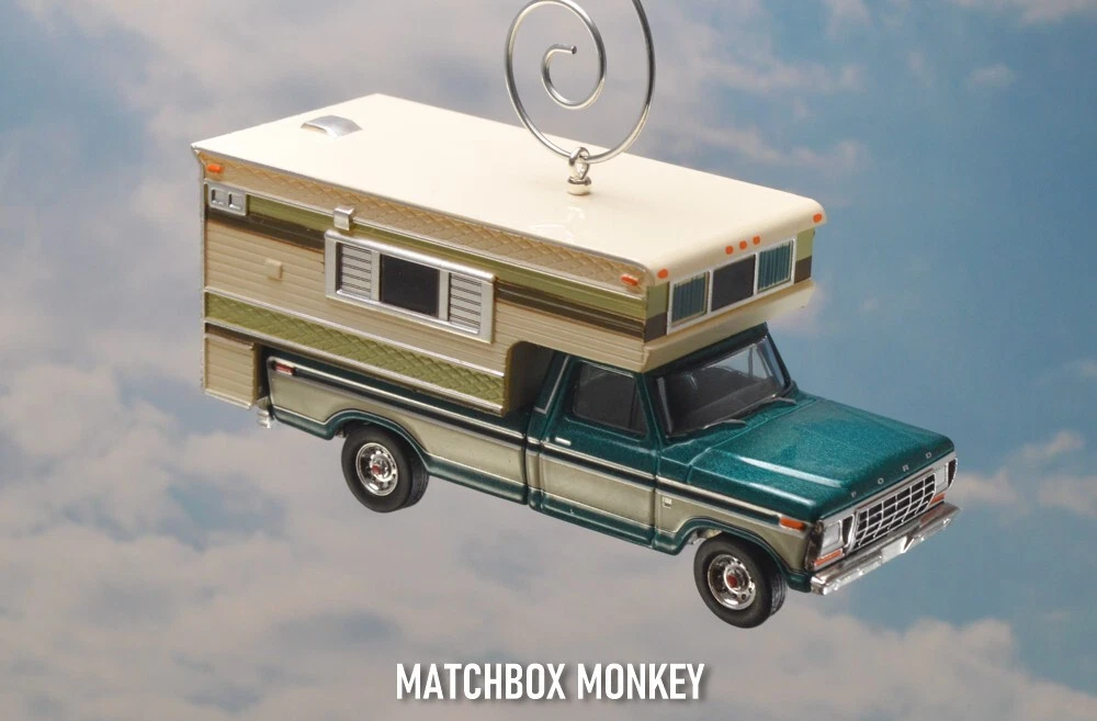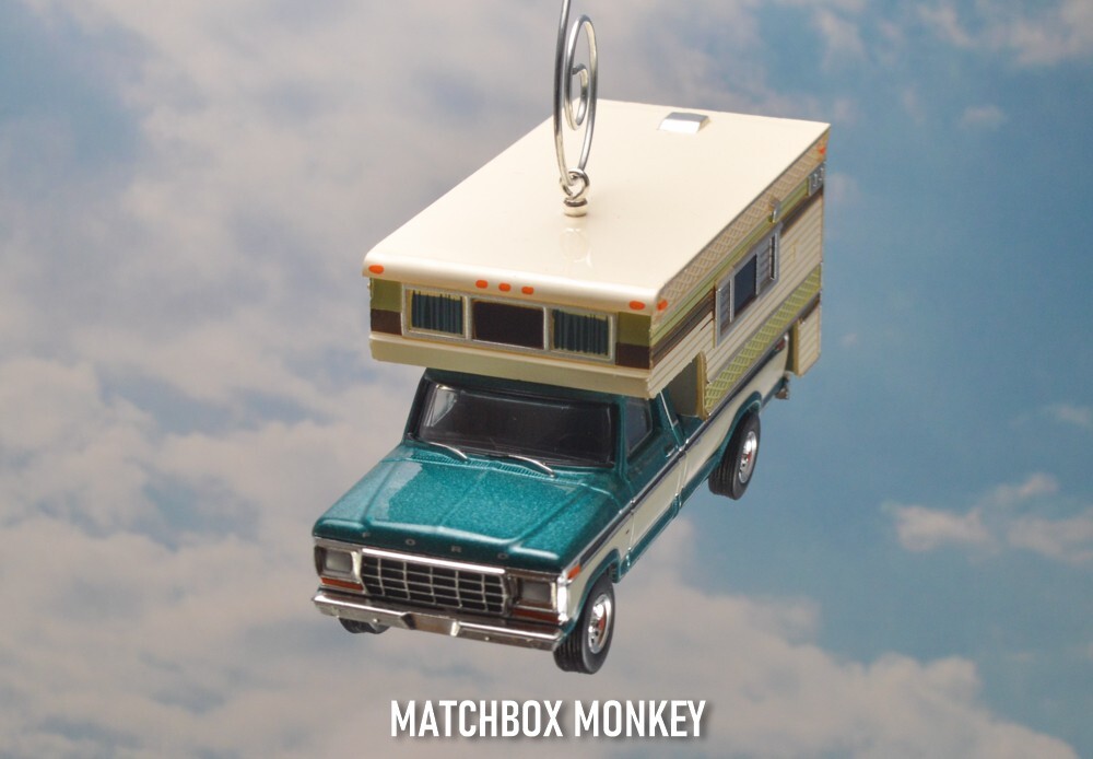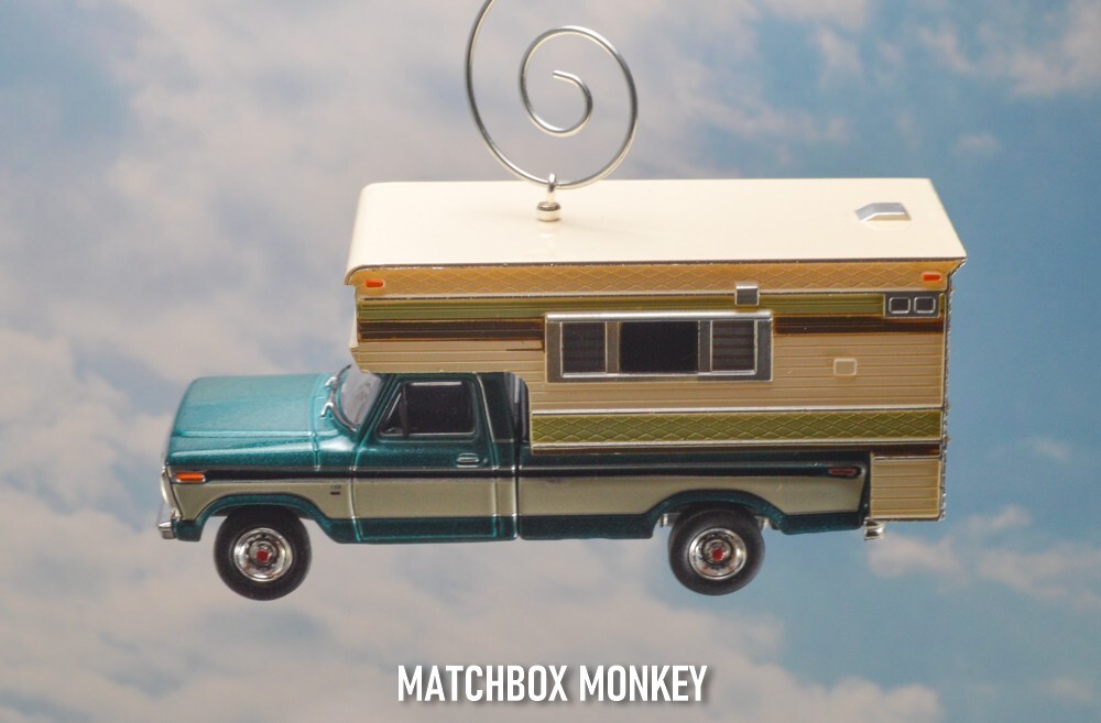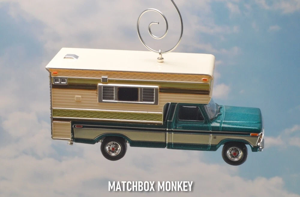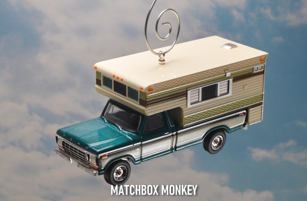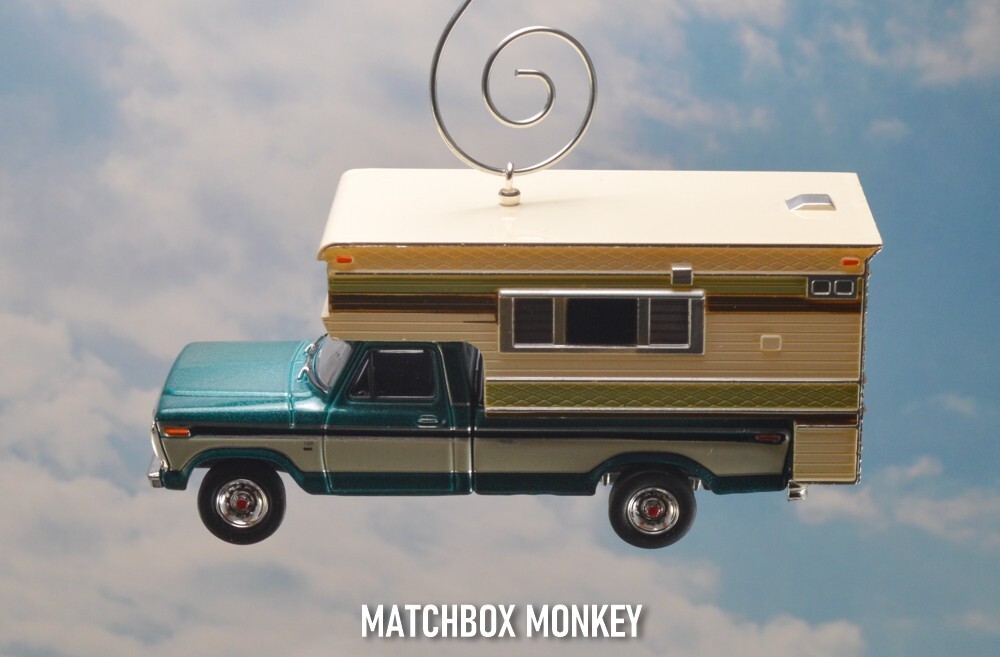BRAND NEW!! 1978 Ford F-250 Truck w/ Camper Custom Made 1/64th Scale - RARE! This is a SPECTACULAR 1/64th Scale replica of the Vintage style 1978 Ford F-250 Truck w/ Camper. Awesome Metallic Jade Green Gloss finish on the truck w/ thick white stripe on lower half - Outlined w/ dark blue. Also has a white camper w/ dark brown and light green accents. It even has the F-250 logo on each front quarter panel! Also has, the "FORD" name on the grill! This baby even has painted door handles, marker lights, and keyholes!!! The entire piece has AMAZING detail and is a very nice replica piece to enjoy for years and years to come. Bring back the past with this custom made ornament hanging from your tree! This even includes rubber tires w/ full treads! 1:64 Scale = 3.5" long This Custom designed Ornament will look Great on the tree! Or will make a GREAT stocking stuffer for the person on your list with everything! (They won't have this! ONE OF A KIND!) WARNING! Beware of others selling similar ornaments - who's pictures are taken without the ornament actually hanging ! *Each of my custom ornaments is made with acute attention to detail, and each is designed to hang as horizontal as possible for the best display on your tree! - I also use custom ordered parts that are designed to blend in, and not detract from the ornament itself! (some use large bulky eye screws that are way to big for these ornaments.) **I also have multiple HD pictures from ALL angles, don't take a chance for any surprises with just a single (many times blurry / out of focus) picture! This ornament will come complete with a Deluxe ornament hanger similar to the one pictured! Don't miss this opportunity! Are you a Ford FANATIC? - check out my other auctions for limited edition Ford Hats, T-Shirts + custom made Ford Keychains, Ornaments and Mirror Hangers! Click Below! Matchbox Monkey Ornaments Keychains ***I always ship these Custom items safely in a ridged cardboard box with plenty of packing material for safe shipping / arrival!*** I have been a trusted seller on eBay for over 24+ Years! My current rating is over 9460+!! Your item will be shipped quickly and safely from a smoke free home! You won't be disappointed! NOTE: I have MANY other custom made Key Chains and Ornaments on my auctions now! ( ) If you don't see what you are searching for, please ask! I may have just what you want, and or can maybe find one just for you! Click on the "Ask Seller a Question" link at the very bottom of this auction listing.