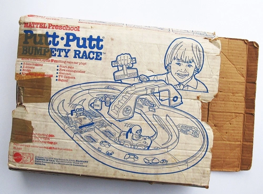 Genuine vintage 1978 Mattel Preschool Putt-Putt Bumpety Race toy playset from Mattel, in very good used condition. Looks to be missing some pieces, please see pictures. Very good condition overall, no obvious breakage. Sold as is, as shown. Ask us - we offer discounts on multiple purchases! Ships in a sturdy unmarked cardboard box! RETURNS: Accepted ONLY if item is still in its originally shipped condition. We do not accept items that have been opened or altered by the buyer. CLICK OR TAP HERE TO SEE ALL THE HOT WHEELS LISTINGS IN OUR EBAY STORE! Tons of items, nearly all of them SEALED and NEVER OPENED! CLICK OR TAP HERE to visit our eBay Store and save on shipping with ONE INTERNET STOP! With over 1500 different items to choose from, we have something for every kid on your list (even the big ones)! Buy with confidence from us -- we have over 15 years experience selling on eBay and other venues!