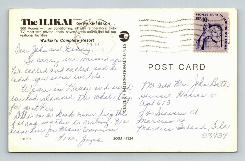 1979 Vintage Postcard of Waikiki Beach’s Iconic Ilikai Hotel in Honolulu HI