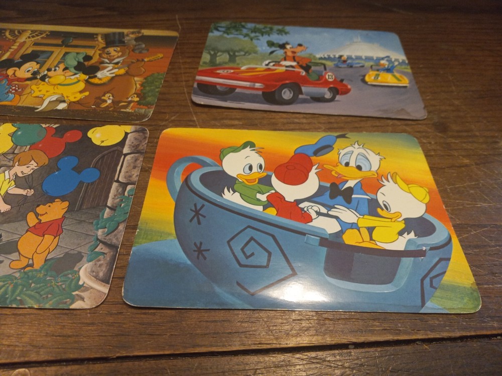 These vintage 1979 Disney postcards are a nostalgic treasure! Featuring classic characters like Mickey, Donald, and Goofy, they capture the magic of old-school Disney. The set includes fun scenes like "Motor Mania" and "Tempest in a Teacup." Though pre-loved with minor marks and stains, the charming artwork still shines. Perfect for collectors or Disney fans who appreciate retro memorabilia. The 5.5"x3" size makes them great for framing or displaying. A delightful piece of Disney history!