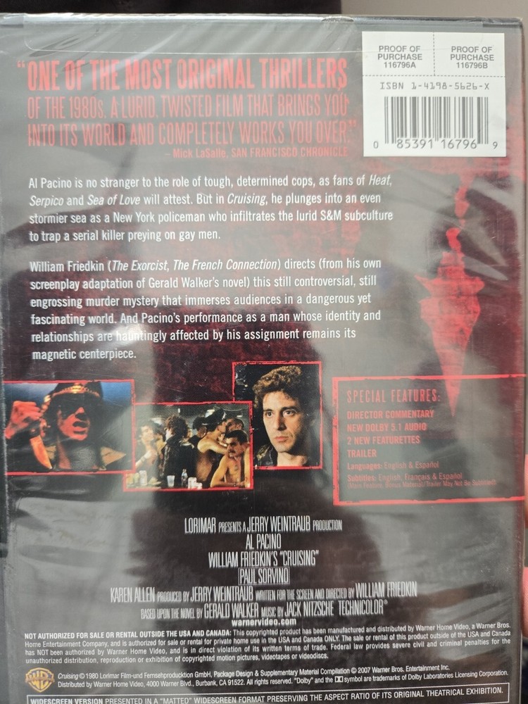 Cruising DVD 1980 Al Pacino GAY BAR LGBTQ Cult Film Homosexual Serial Killer