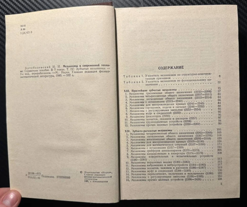 1980 Mechanisms Engineering Modern Technology Technical Architecture Soviet book Moscow 1980 Size, cm. 21 x width 13 Weight, g. 611 Pages 590 Copies 43 000 Cover hardcover Condition good Readers are offered a fundamental multi-volume reference manual on mechanisms in modern technology, the author of which is the outstanding Soviet scientist-mechanic I.Y. Artobolevsky When selecting mechanisms, schemes and descriptions of mechanisms of general purpose, or mechanisms used in various branches of mechanical engineering, are mainly given. Separate mechanisms of the target, branch direction were also included in the directory as representing interest not only for this narrow branch, but also for other branches of machine building. Each scheme of the mechanism is accompanied by its brief description. This fourth volume is devoted to gear mechanisms. A description of the simplest gear mechanisms, gear-lever, gear-shaft, gear-ratchet, gear-cam, worm-screw and complex gear mechanisms is given. Tables for the classification of mechanisms of the fourth volume by structural and constructive features and functional purpose are given. The book is recommended primarily to engineers, designers and inventors. It will also be useful to teachers, graduate students and students of mechanical and mechanical engineering specialties. Вниманию читателей предлагается фундаментальное многотомное справочное руководство по механизмам в современной технике, автор которого — выдающийся советский ученый-механик И.И. Артоболевский. При отборе механизмов даются в основном схемы и описания механизмов общего назначения, или механизмов, применяемых в самых различных отраслях машиностроения. Отдельные механизмы целевого, отраслевого направления также были включены в справочник как представляющие интерес не только для данной узкой отрасли, но и для других отраслей машиностроения. Каждая схема механизма сопровождается ее кратким описанием. Настоящий четвертый том посвящен зубчатым механизмам. Дается описание простейших зубчатых механизмов, зубчато-рычажных, зубчато-цевочных, зубчато-храповых, зубчато-кулачковых, червячно-винтовых и сложных зубчатых механизмов. Приводятся таблицы классификации механизмов четвертого тома по структурно-конструктивным признакам и функциональному назначению. Книга рекомендуется прежде всего инженерам, конструкторам и изобретателям. Она также будет полезна преподавателям, аспирантам и студентам механических и машиностроительных специальностей. I always combine shipping for saving postage expenses Item ships within 1 business day after the receipt of the payment. The item will be shipped by registered airmail by Ukrainian Postal Service. Shipping takes 12-20 business days to USA, Canada, Australia and Japan. Shipping to Europe takes 7-15 business days. Money back policy: 14 days guarantee