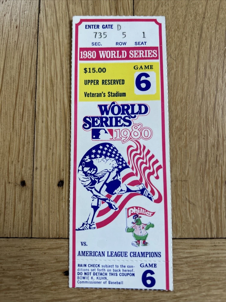 Home+ 1980 Ticket Stub - World Series Clinching Game 6 Phillies Vs Royals CLEAN!!