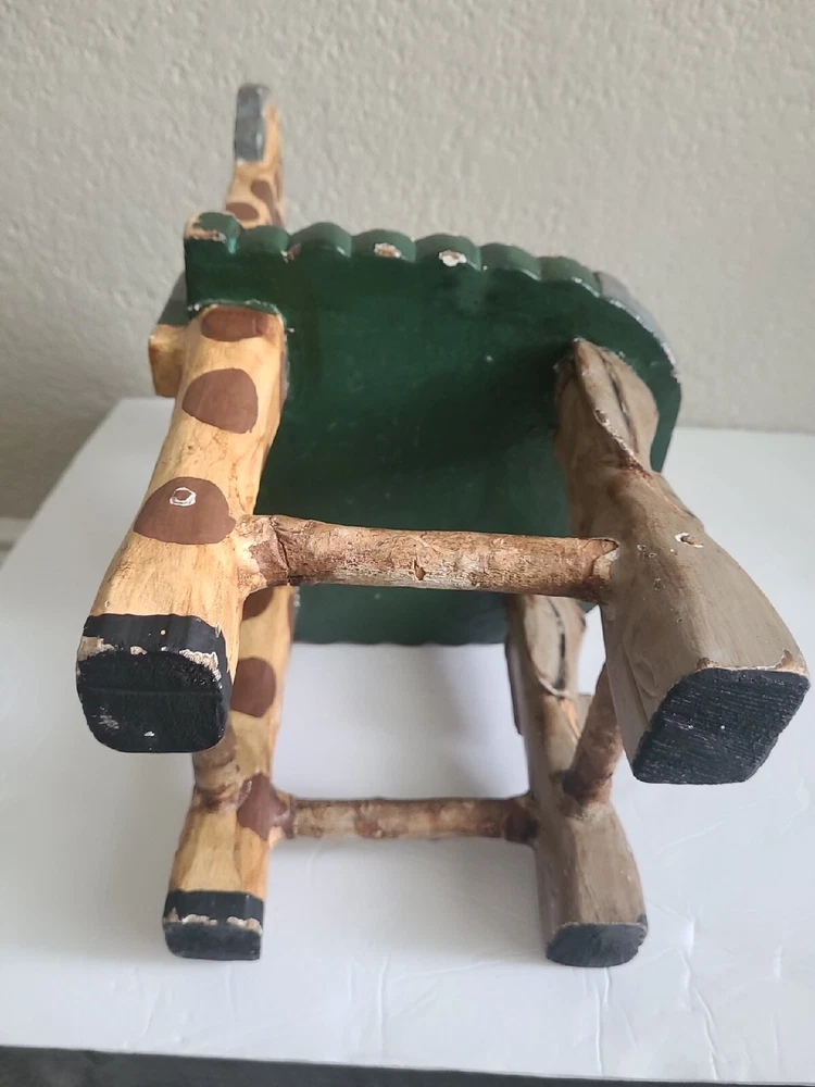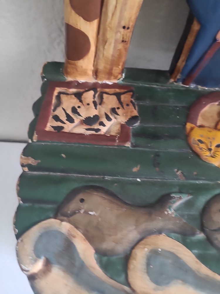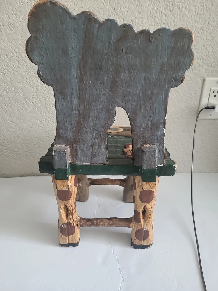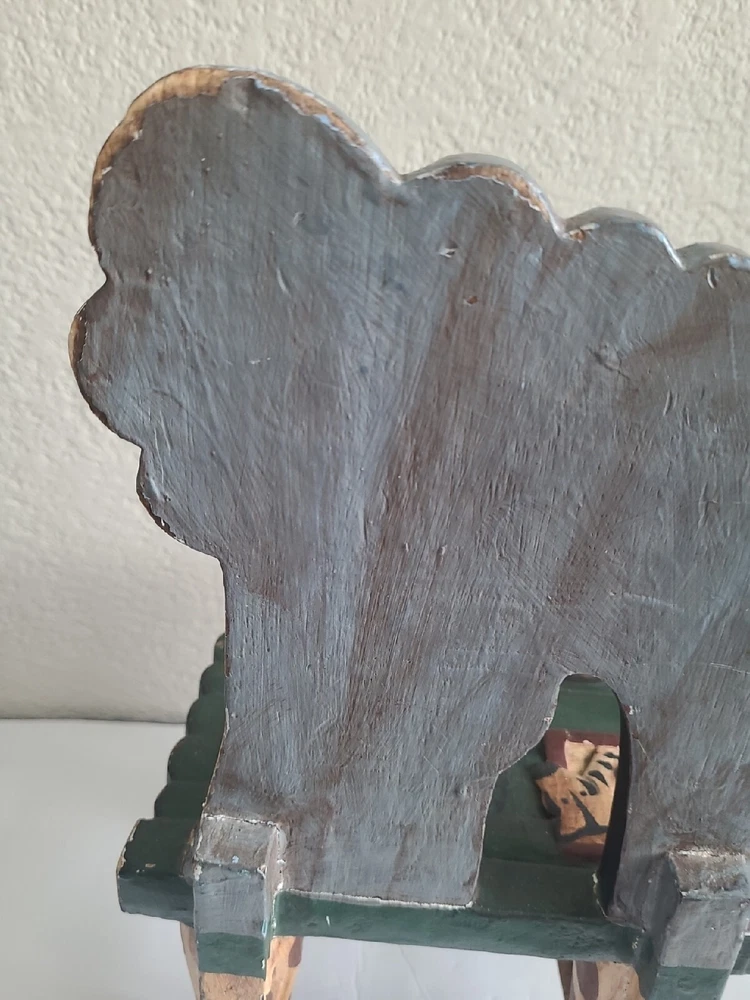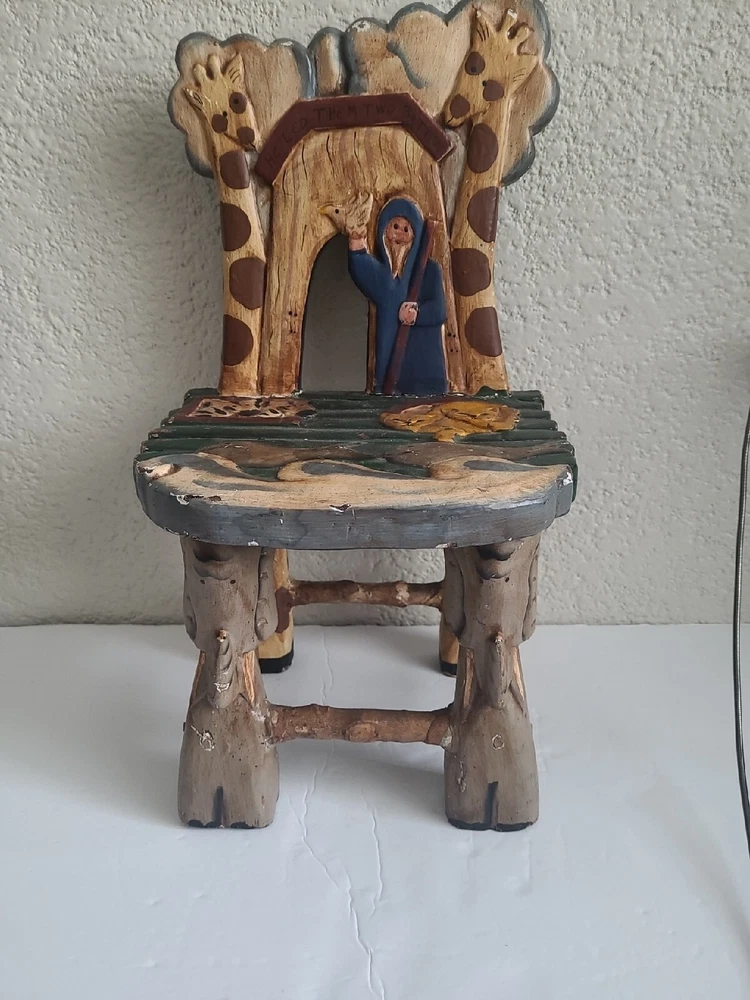 This beautiful child's chair is a unique piece of furniture that will add charm and character to any room. Crafted in the 1980s, this chair features intricate carvings of animals from Noah's Ark and is painted with a vibrant, multicolor finish. The chair is made with a sturdy construction and stands at 17.5 inches tall, 10 inches long, and 9 inches wide. This antique chair is perfect for any collector or enthusiast of vintage furniture. It is ideal for a child's room or as a decorative piece in a living room or study. The chair's brand is unbranded and it has several features, including carvings and a painted finish. Don't miss out on the opportunity to own this one-of-a-kind piece!