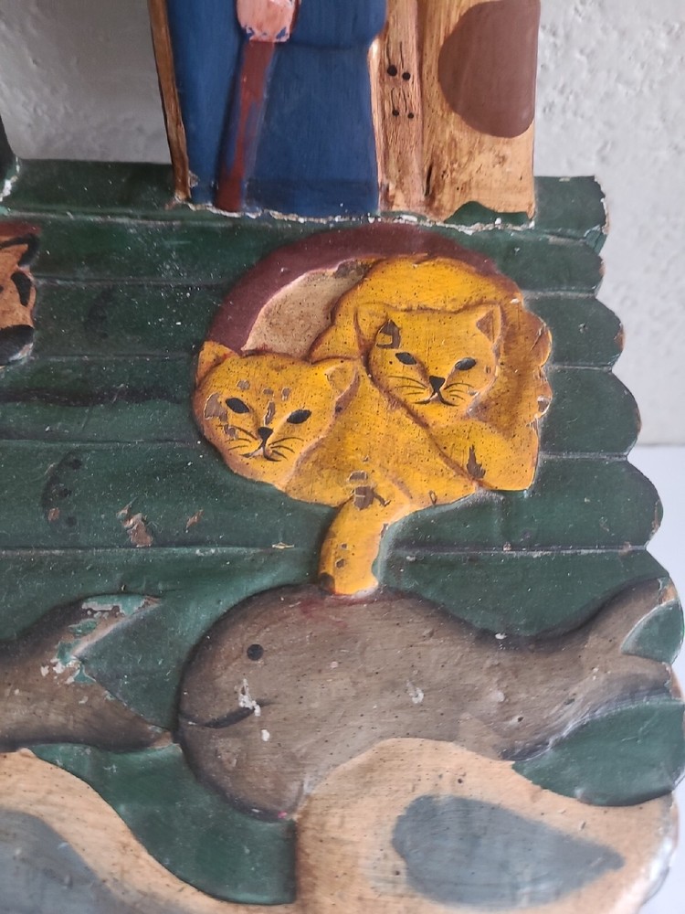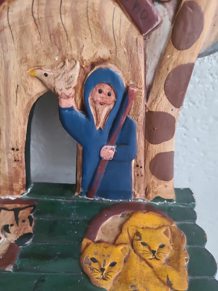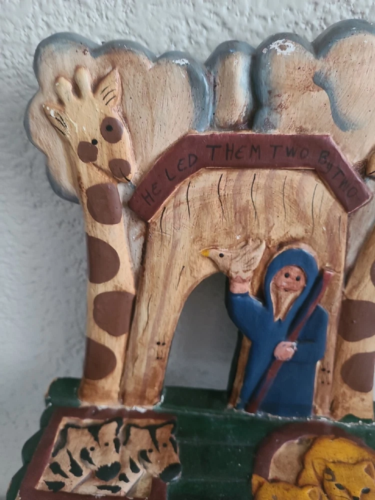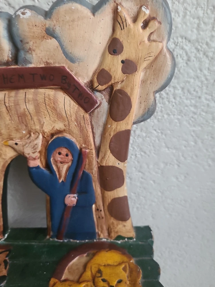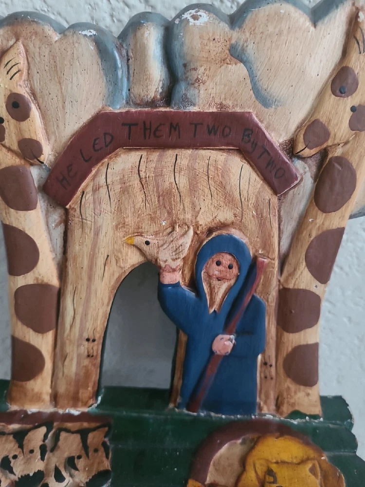 This beautiful child's chair is a unique piece of furniture that will add charm and character to any room. Crafted in the 1980s, this chair features intricate carvings of animals from Noah's Ark and is painted with a vibrant, multicolor finish. The chair is made with a sturdy construction and stands at 17.5 inches tall, 10 inches long, and 9 inches wide. This antique chair is perfect for any collector or enthusiast of vintage furniture. It is ideal for a child's room or as a decorative piece in a living room or study. The chair's brand is unbranded and it has several features, including carvings and a painted finish. Don't miss out on the opportunity to own this one-of-a-kind piece!