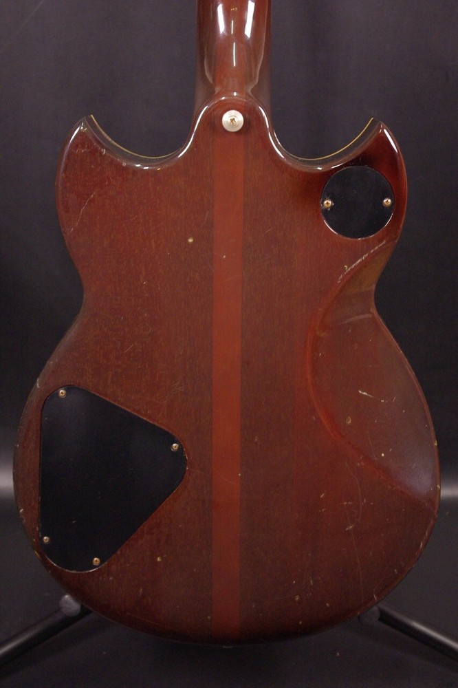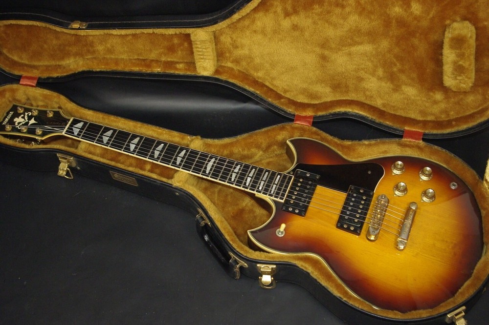 Description Body: Maple + Mahogany, Fingerboard: Ebony, Neck: Maple + Mahogany, Original Yamaha Gold Pegs, Original Humbucking Pickup, Original Pickguard, Original Bridge & Tailpiece, The SG-2000, a high-end Yamaha SG model, has arrived in a tasteful brown sunburst finish! The body and neck are made of one piece maple and mahogany, which is its biggest feature and gives it a thick sustain! The serial number suggests that it was made in 1981, and there are dents and scratches here and there, the metal parts are dull, and there is a thin cloudiness overall. There are also cracks in the cavity cover on the back and the screw on the pickup cover, but this does not interfere with playing. The main parts such as the gold pegs, tailpiece, and bridge were also original. The nut width is about 43 mm, which is a slightly thin and easy-to-hold grip. The angle of the neck is slightly forward-bent on the 1st string side compared to the 6th string side, but it is appropriate. The truss rod also works without any problems. The frets are a little worn, but there is still plenty of room for further use. The string height is adjusted so that it is easy to press even in the high positions, but we can also fine-tune it to your liking. Compared to the SG-1000, it has a more beautiful and balanced sound! Please take this opportunity to try it out! Comes with an original hard case. Shipping Shipping by Fedex or EMS (international express mail service, with Tracking and Insurance, handling cost). Fedex takes 1 week, EMS takes 1-2 weeks. We will ship your item within 5 business days with carefully packed. Returns Money back guarantee within 30 days. We offer 30 days money back guarantee for defective products. The buyer must pay for returning it back to us. When there were defects in a item, please contact us. About Us If you have any problem, please contact us. Your satisfaction is important to us. We have results that I sold of tens of thousands of by Internet sale. We have pride ourselves in the Quality of items we offer. All our items has been checked by technician. As every seller dealing with pre-owned branded items in Japan we have as well license from local government to offer services of this kind. We are officially registered as legal business and we have to comply with all rules and regulations including tax requirements from the Japanese government. International Buyers - Please Note: Import duties, taxes and charges are not included in the item price or shipping charges. These charges are the buyer's responsibility. Please check with your country's customs office to determine what these additional costs will be prior to bidding/buying. These charges are normally collected by the delivering freight (shipping) company or when you pick the item up - do not confuse them for additional shipping charges. We do not mark merchandise values below value or mark items as “gifts” - US and International government regulations prohibit such behavior.